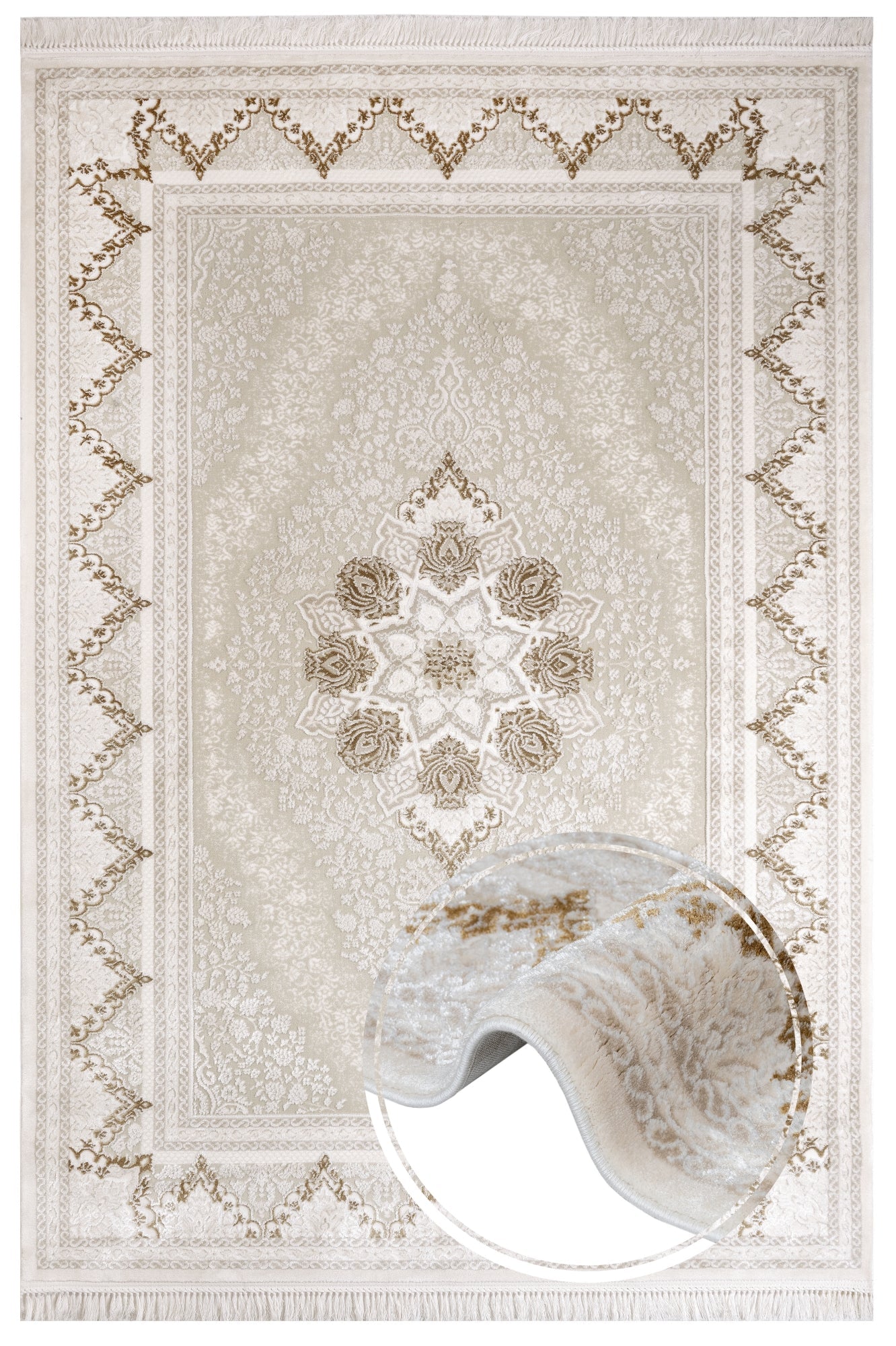 This Classic Area Rug is the perfect addition to your living room, offering both style and functionality. Crafted as a machine made rug from durable acrylic carpet fibers, this beige area rug brings warmth and elegance to any space. The fringed edge rug design adds a traditional touch while the non slip rug backing ensures safety on hardwood or tile floors. Measuring 8 by 10 feet, this Artemis area rug covers your floor with a soft yet resilient surface that withstands daily wear.