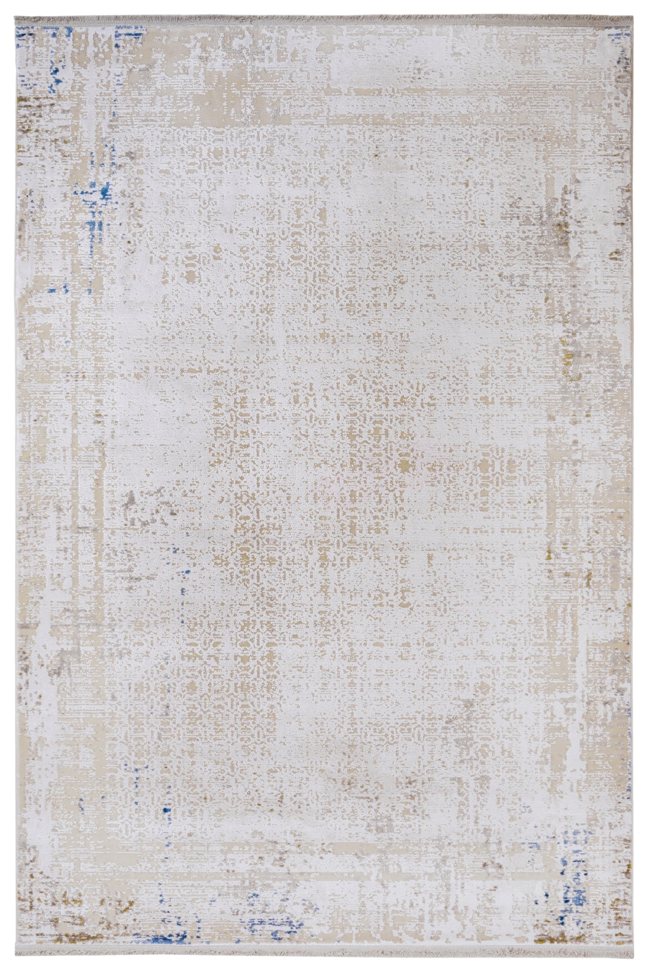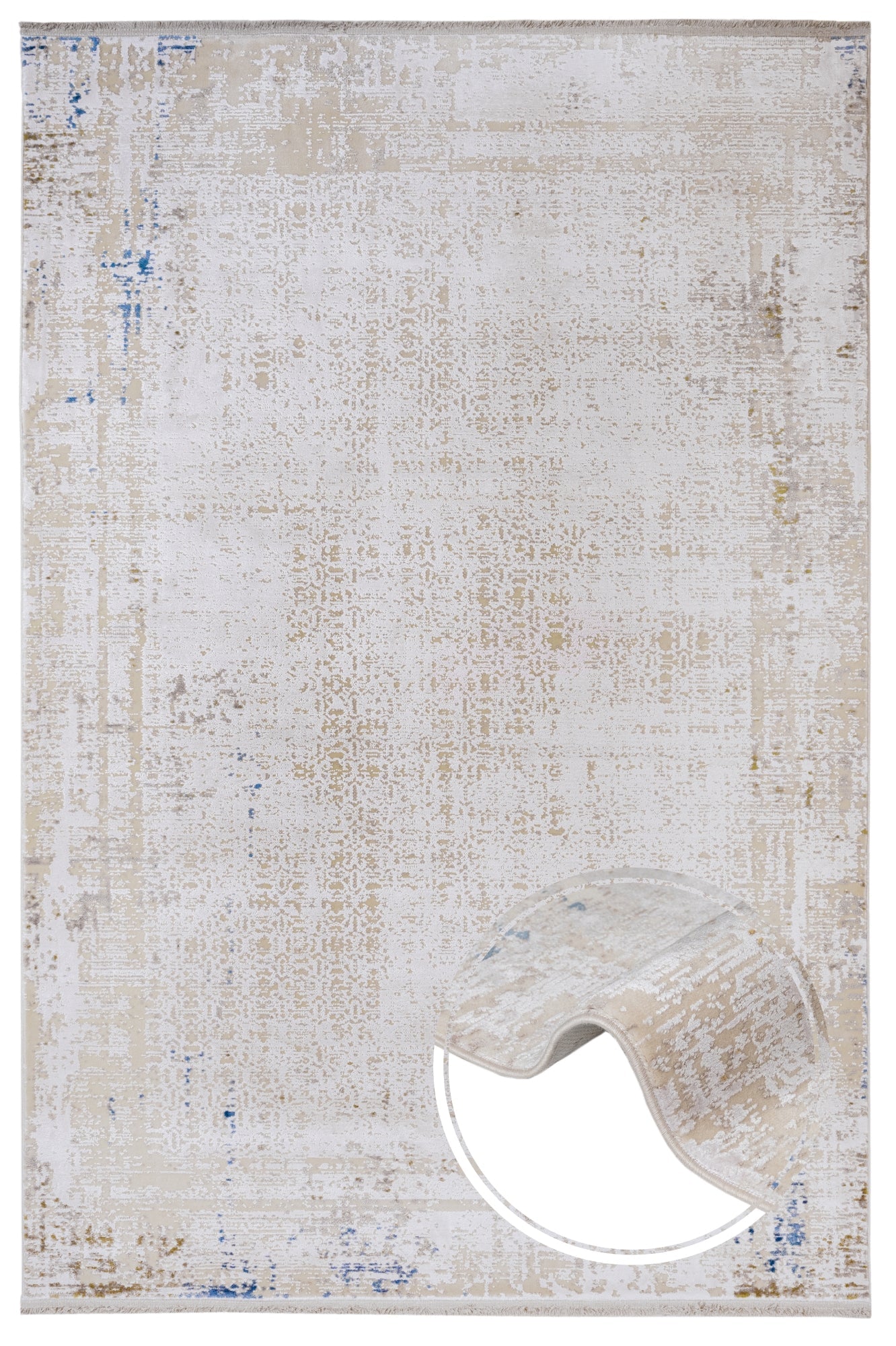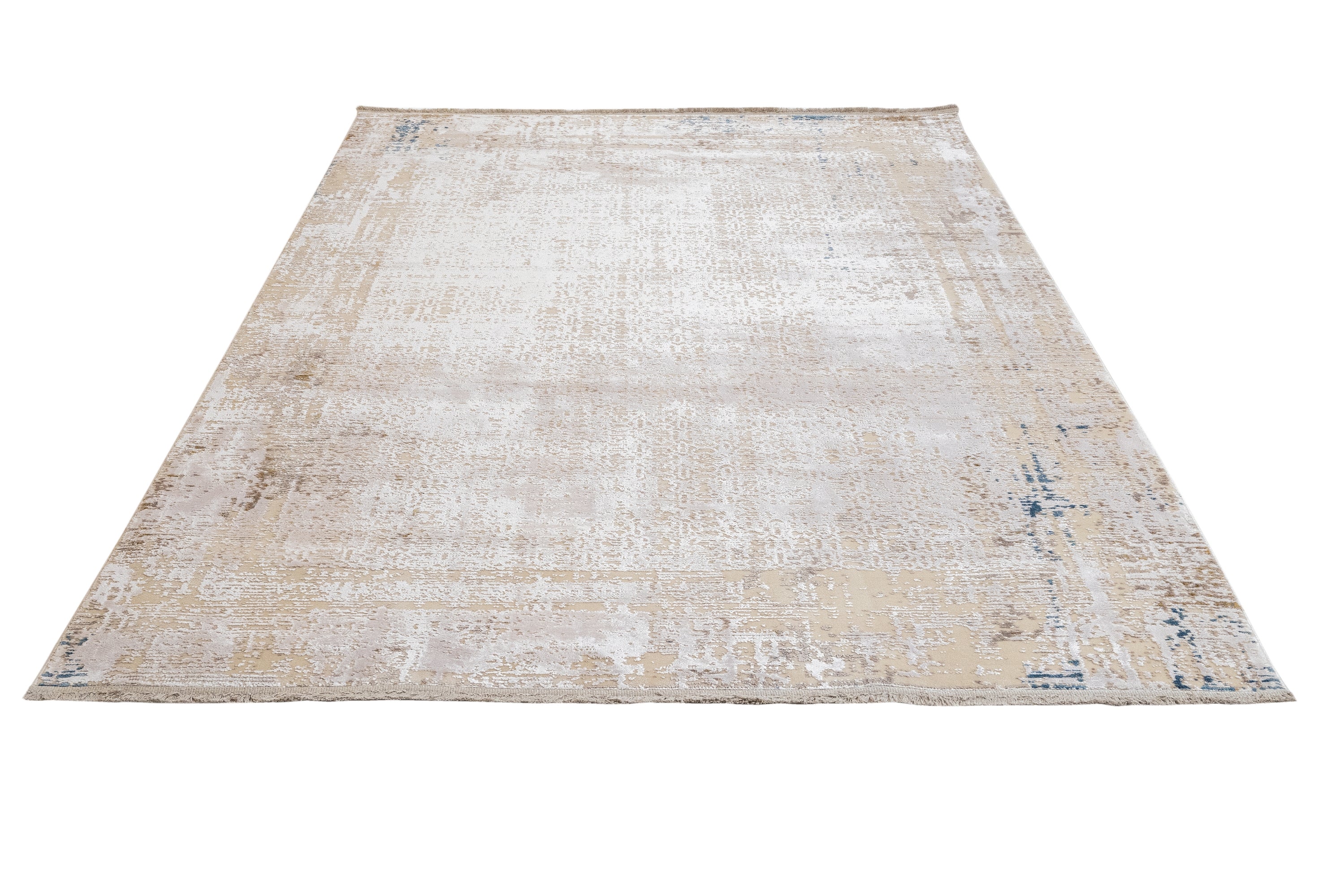 Modern Viscose Area Rug – Cream Machine Made Rug with Fringed Edge