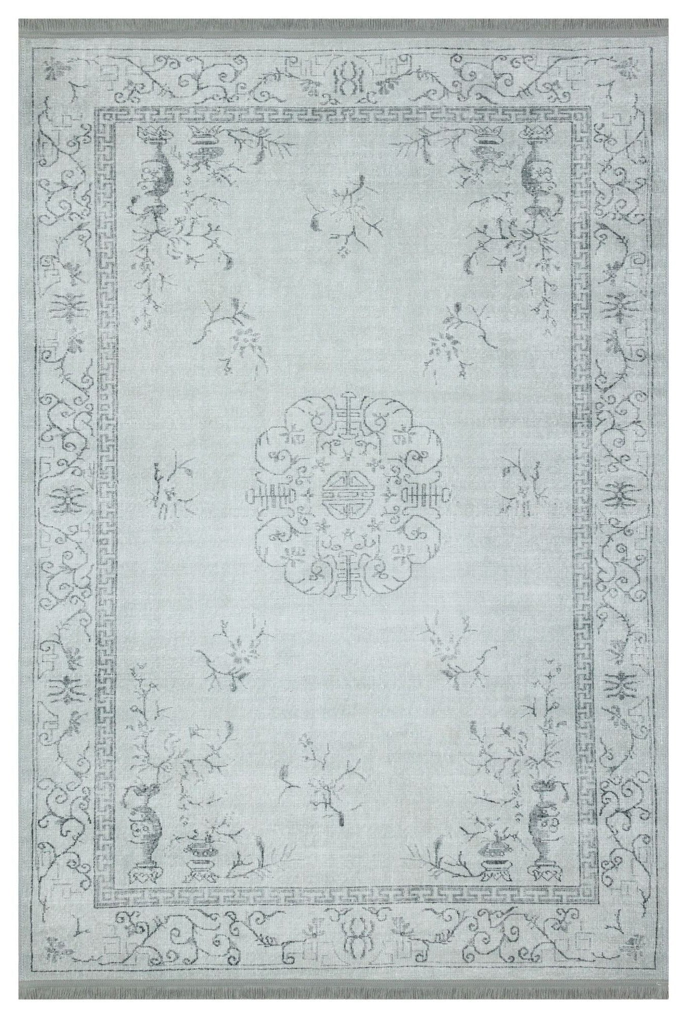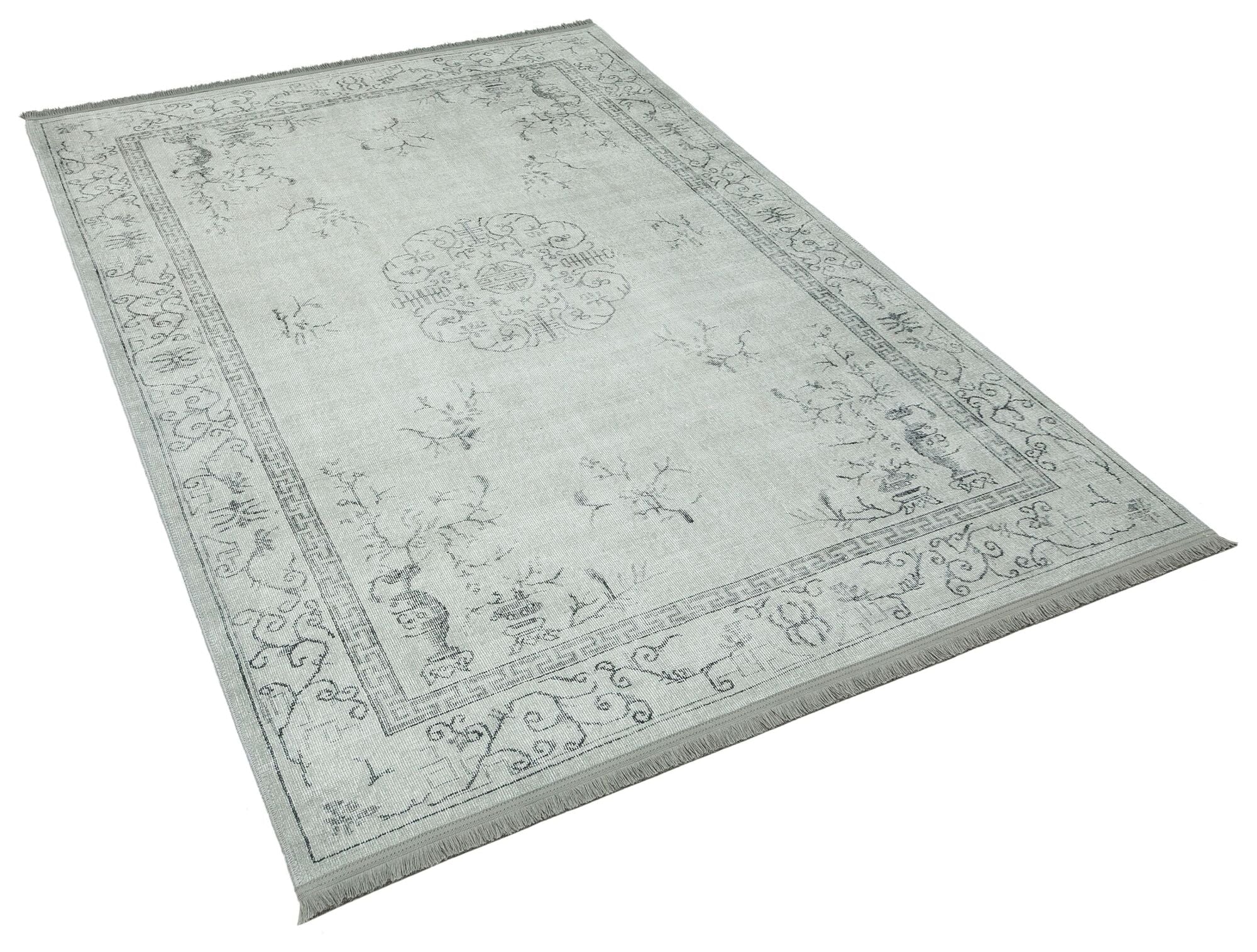 Classic Cotton Area Rug – Grey Digital Print Rug with Fringed Woven Base