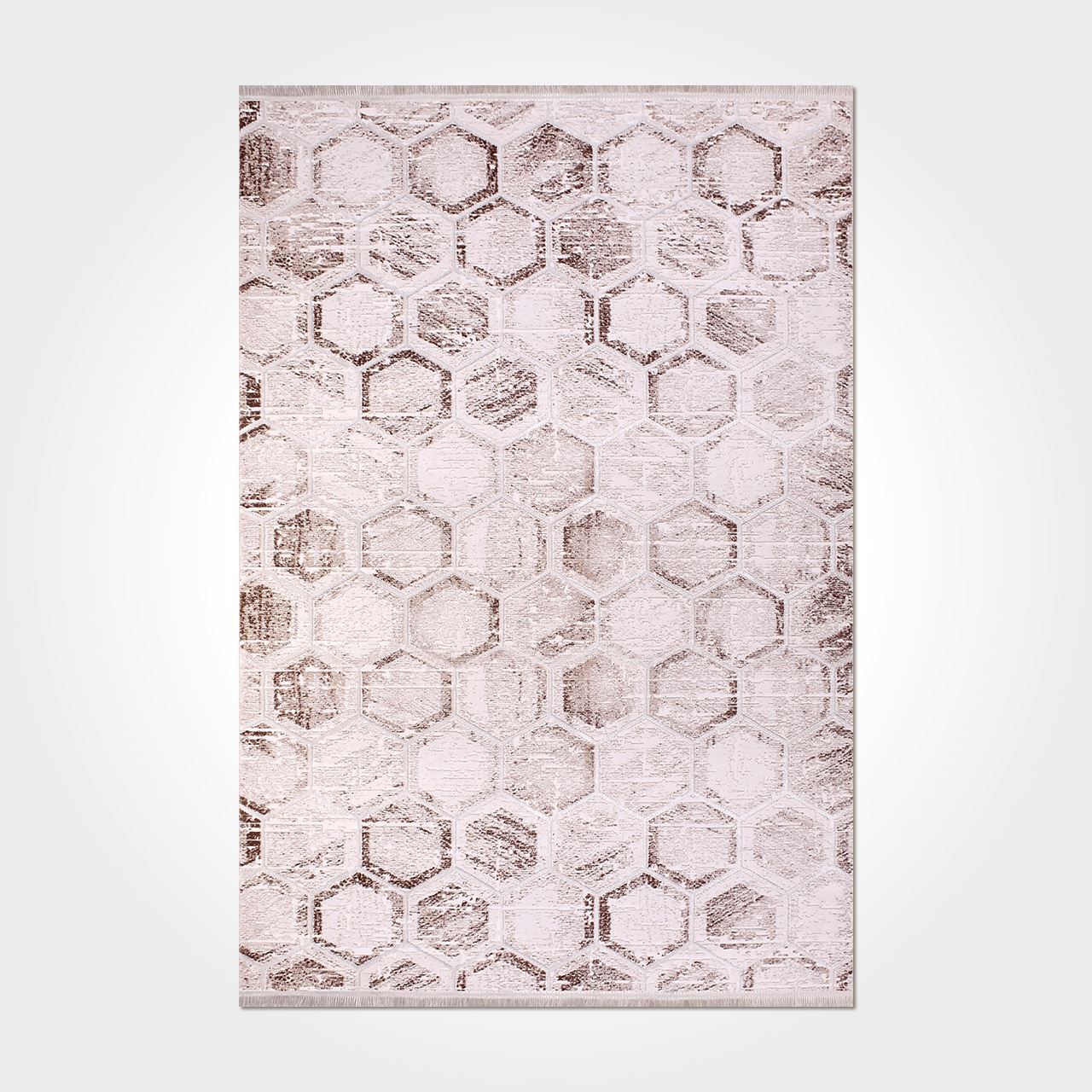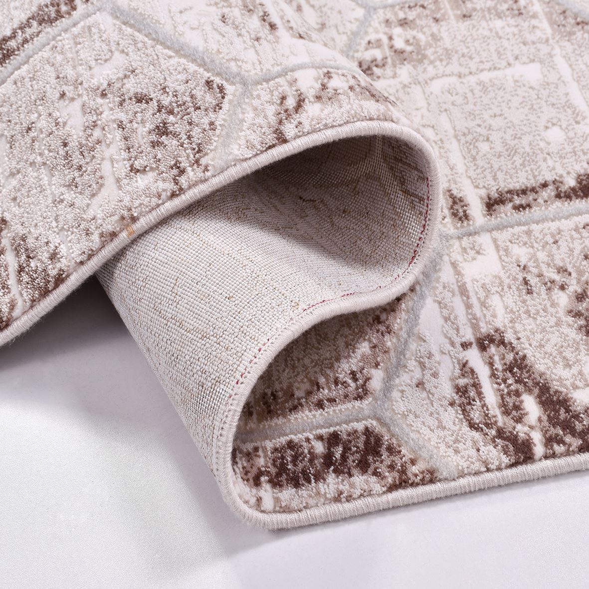 Geometric Area Rug – Machine Made Brown Cream 10 mm Pile Non Slip Rug