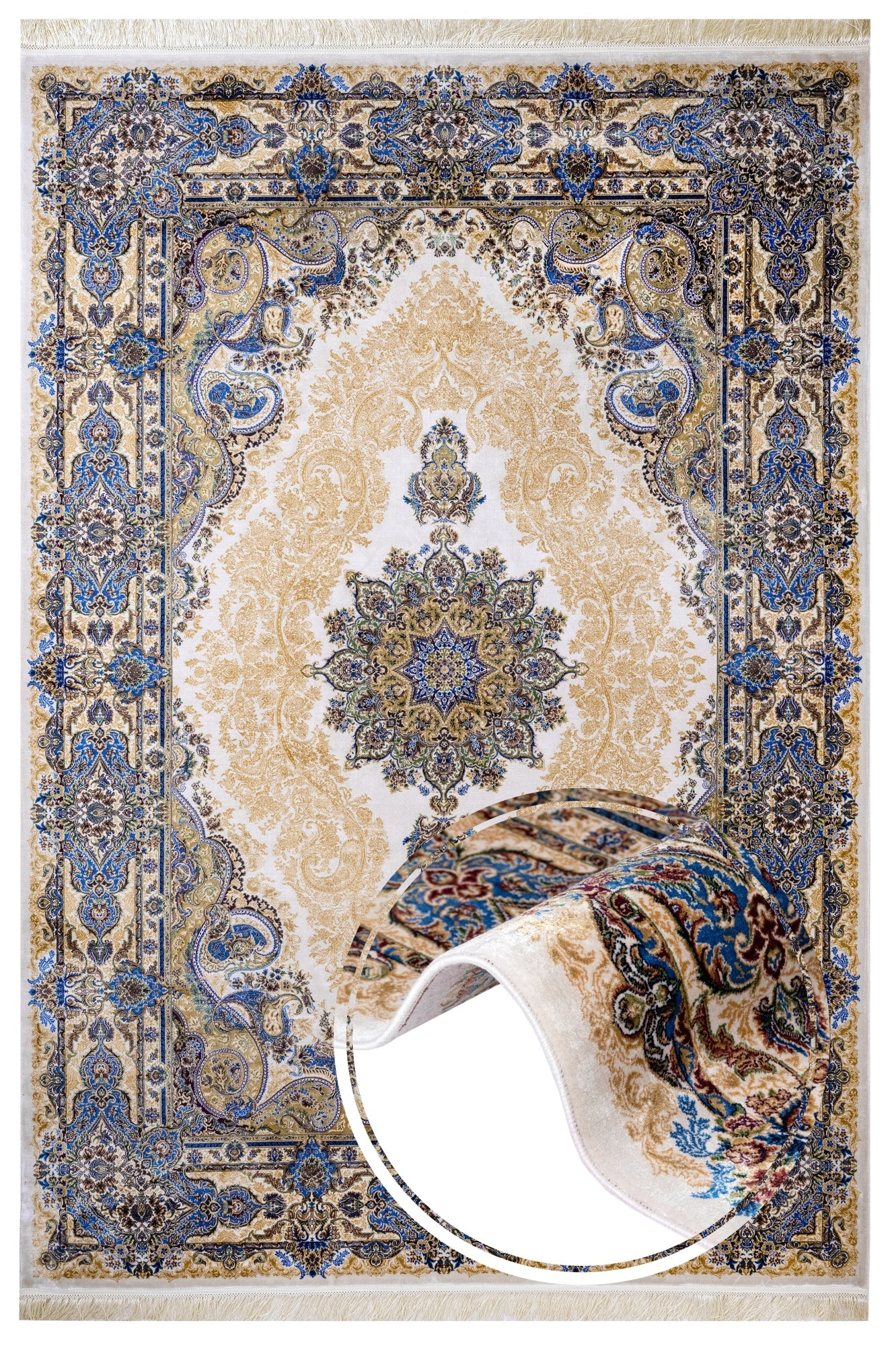 Viscose Area Rug - Classic Blue Machine Made Carpet with Fringed Edges