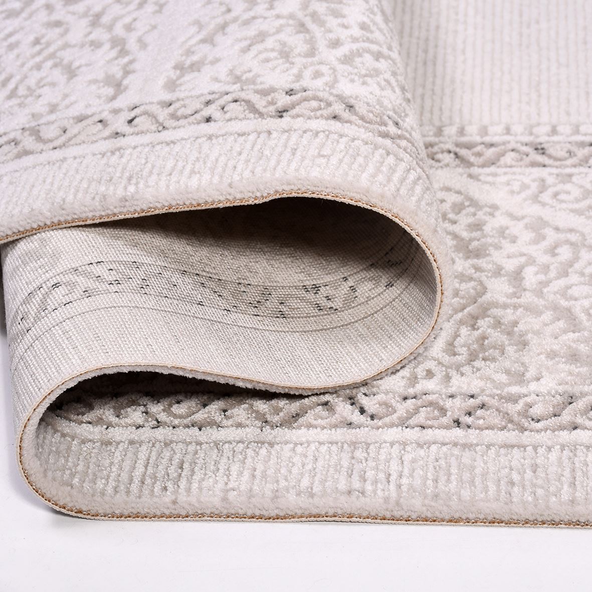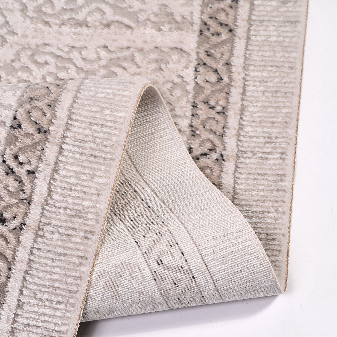 Machine Made Area Rug - Cream Frame Rug With Laser Cut Edge, Non Slip