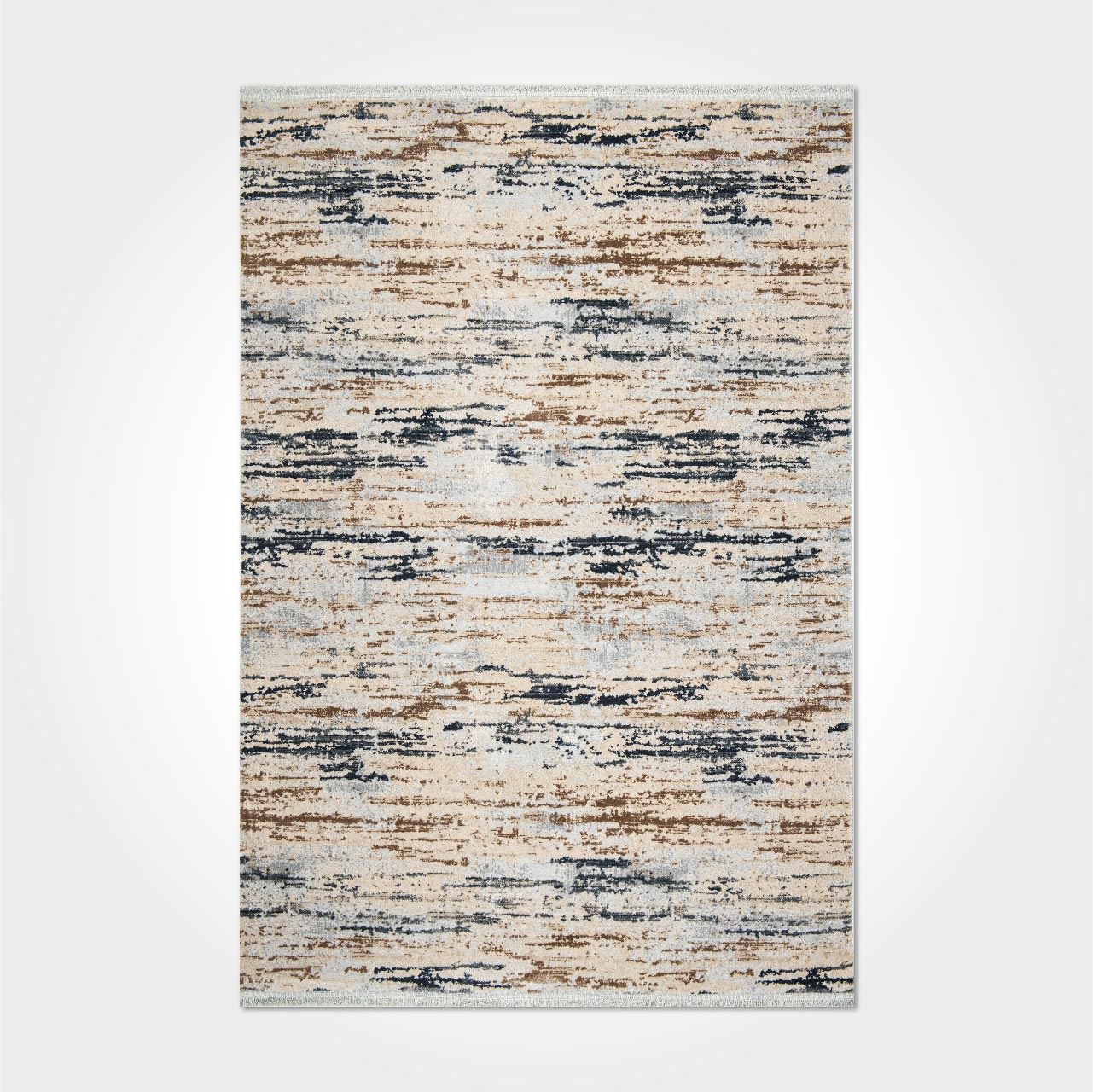 Machine Made Area Rug - Cream Grey Striped Polyester Rug with Overlocked Edge