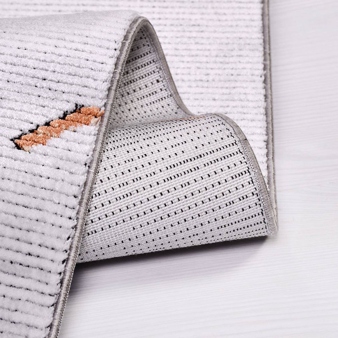 This machine made area rug offers a stylish and durable floor covering solution designed to enhance any living space with its modern striped carpet pattern in grey brown tones. Crafted from high-quality acrylic yarn and cotton weft, this low pile rug features a pile height of 0.8 mm and an impressive stitch frequency of 1,250,000 stitches, ensuring long-lasting durability and comfort underfoot. The overlocked edge rug design prevents fraying, maintaining a clean and polished look over time. Ideal as a contemporary floor mat, this machine woven rug serves as an area rug piece that complements various interior styles while providing practical wear resistance.