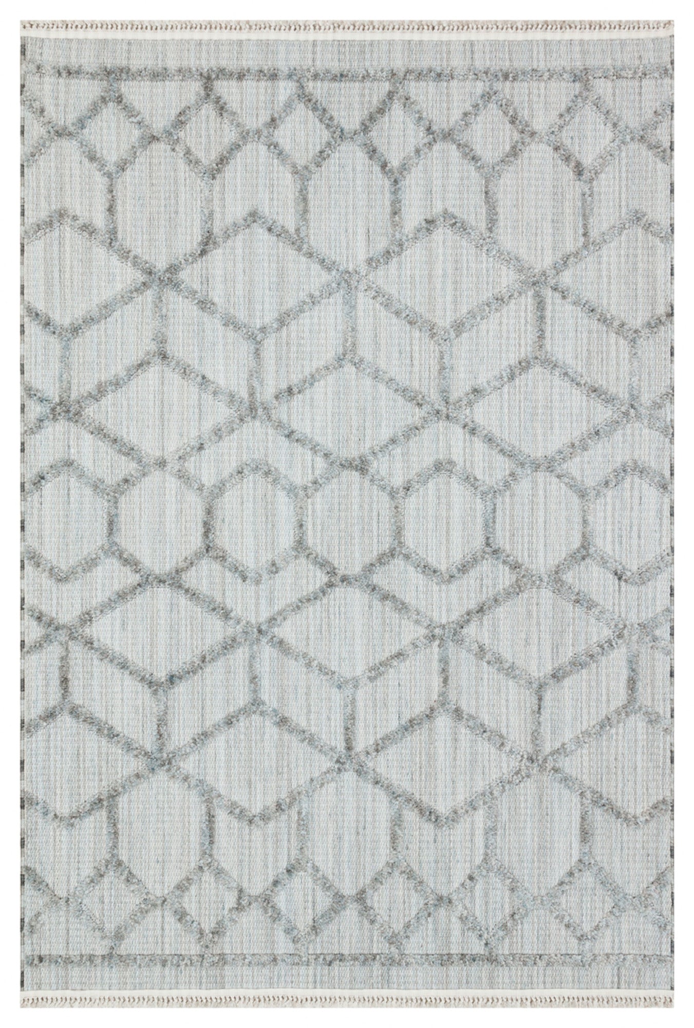 Grey Geometric Area Rug – Machine Made Rug With Cotton Yarn & Stain Resistant Design