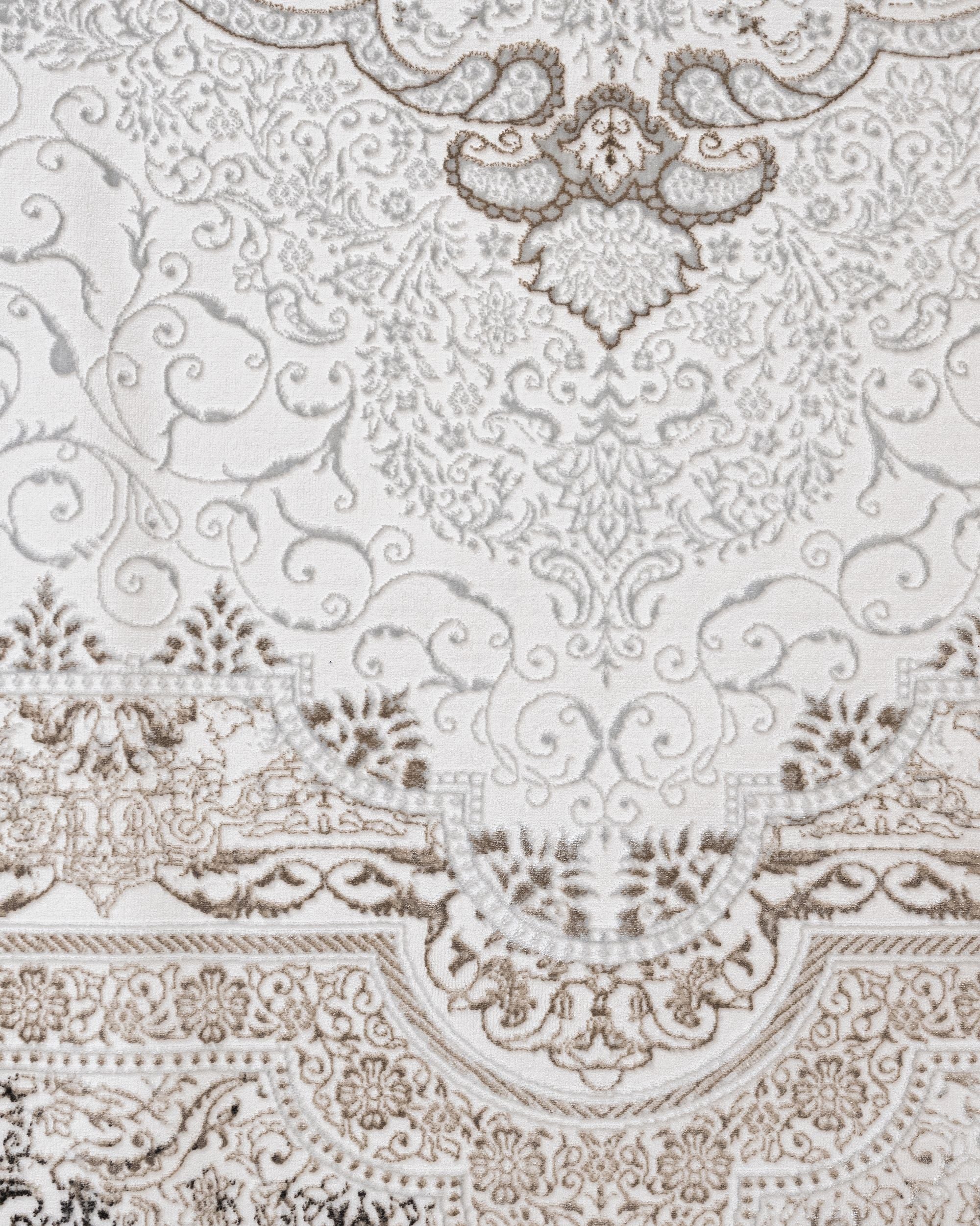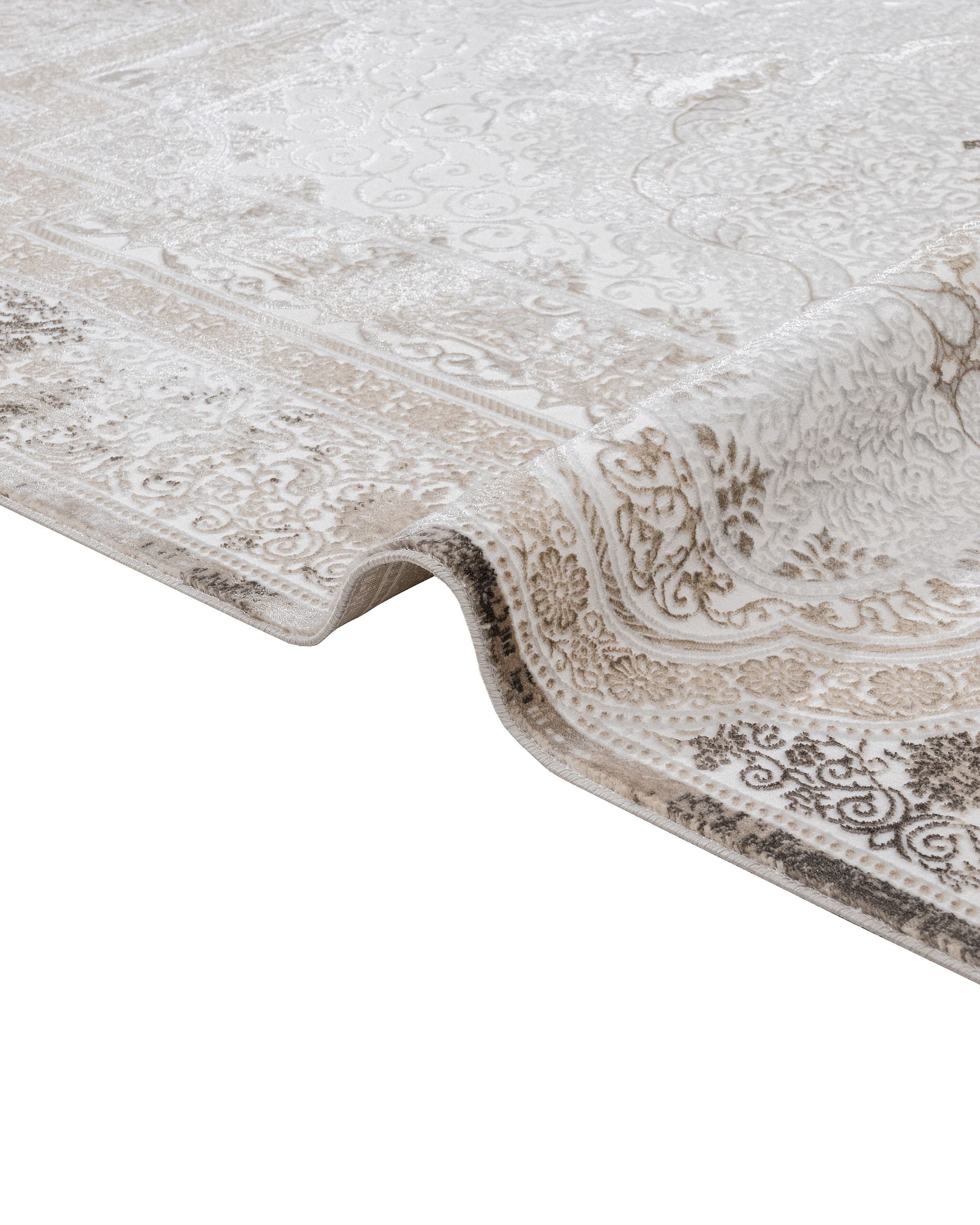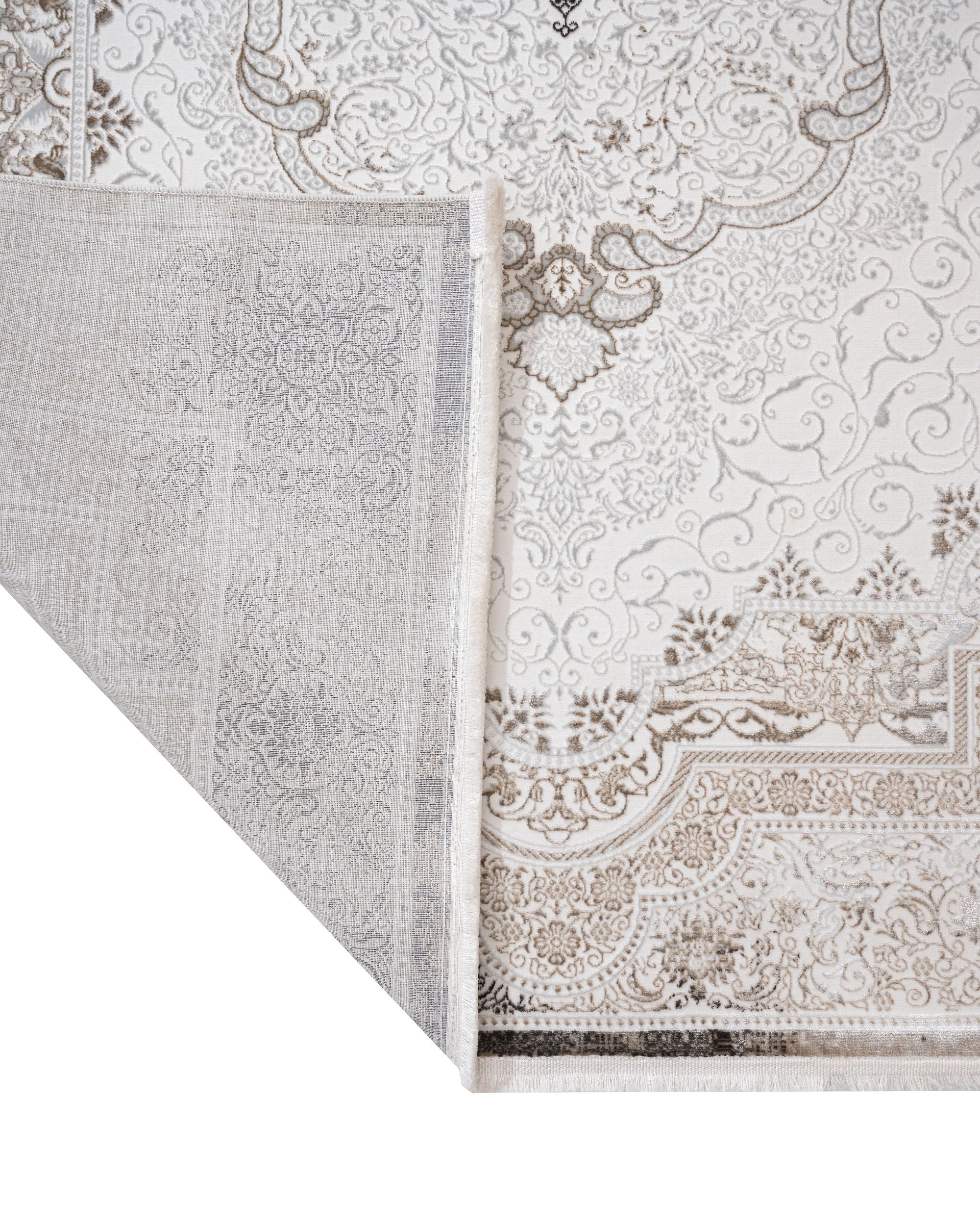 This cotton area rug features a machine made design crafted with soft cotton threads, offering a durable and comfortable addition to your living space. The beige medallion rug showcases a classic medallion pattern carpet that enhances any room's décor while providing a gentle touch underfoot. Made from 100% cotton weft base, this machine woven carpet ensures natural breathability and resilience. Designed to shrink only 3% to 5% in width due to its cotton weft base, it maintains its shape and size over time. Tested for durability, this washable area rug withstands regular cleaning without losing softness or color vibrancy.