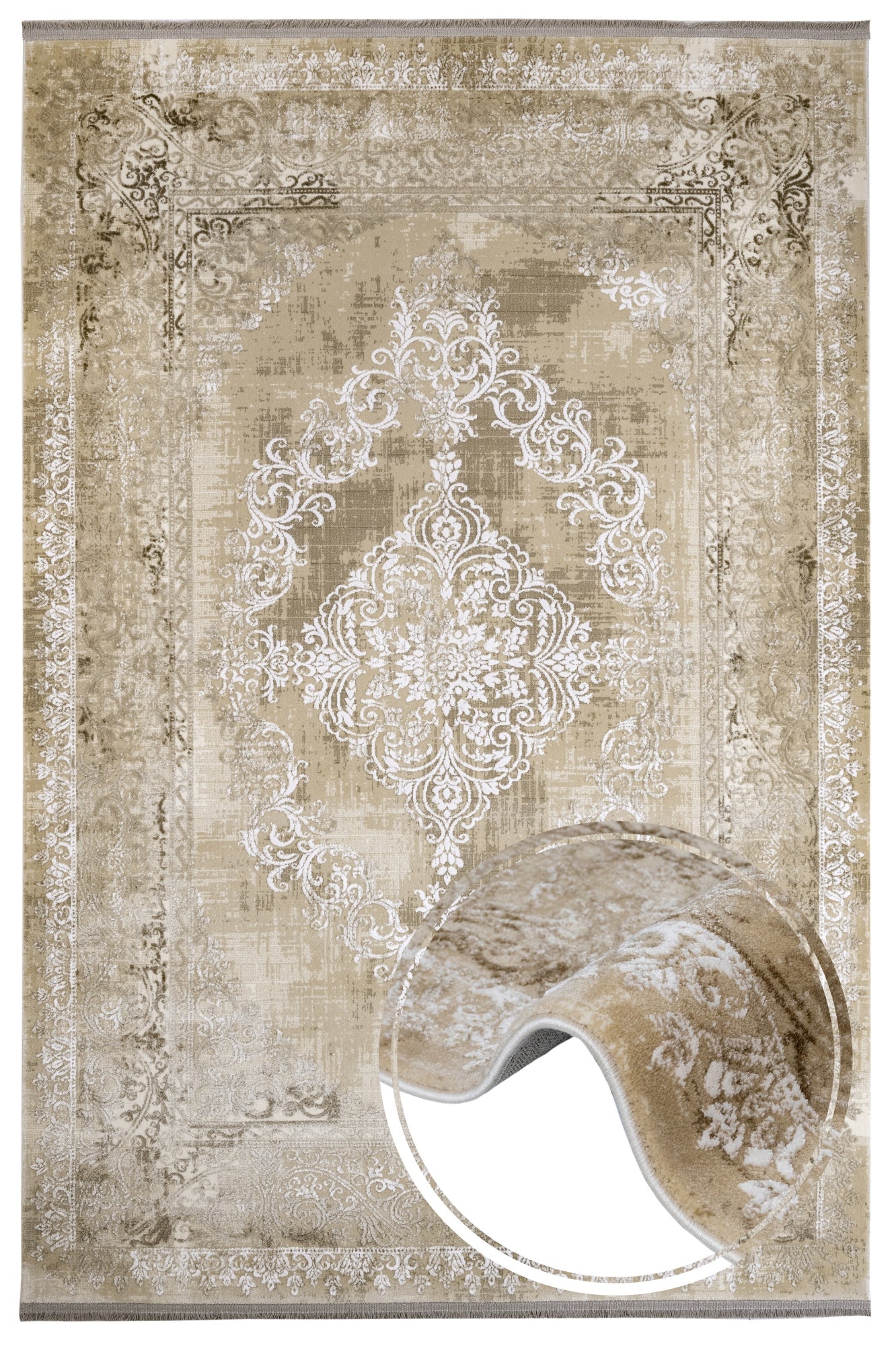 Machine Made Area Rug – Durable Acrylic Carpet with Fringed Edge for Living Room