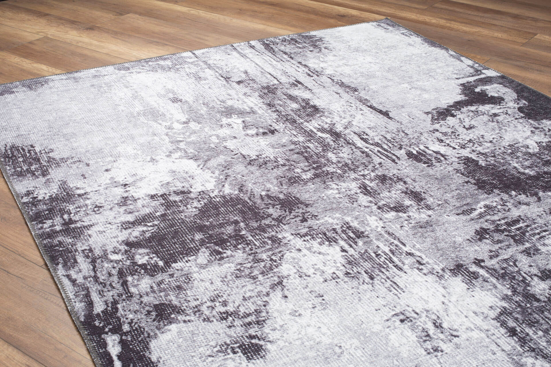 The Modern Cotton Area Rug is a washable, non-slip grey soft microfiber carpet designed to enhance any living space with comfort and style. This modern cotton area rug features a high-resolution print on polyester yarn, creating a machine-made rug that feels as luxurious as a handwoven carpet. Its dust-resistant surface and thick, heavy construction make it ideal for high-traffic areas like living rooms and corridors, providing both durability and softness underfoot.
