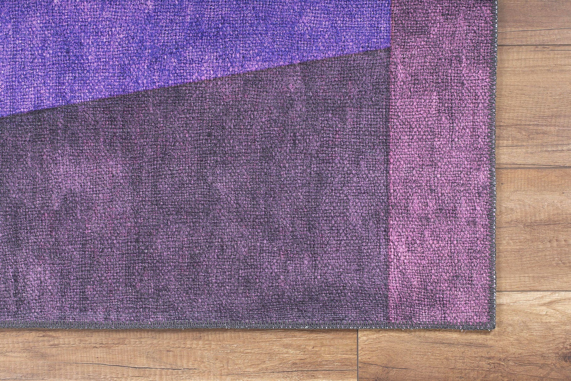 The Purple Geometric Area Rug is a heavy thick polyester yarn carpet designed to bring modern style and comfort to your living room. This purple geometric area rug features a high resolution print rug technology that delivers vivid colors and intricate patterns, making it a decorative floor covering that enhances any space. Crafted with microfiber floor rug fibers, it offers a soft dust resistant rug surface that stays fresh and clean longer. The machine made carpet combines durability with the feel of a hand carpet, thanks to its advanced digital print rug system. Its washable non slip backing ensures safety and easy maintenance, perfect for busy households.