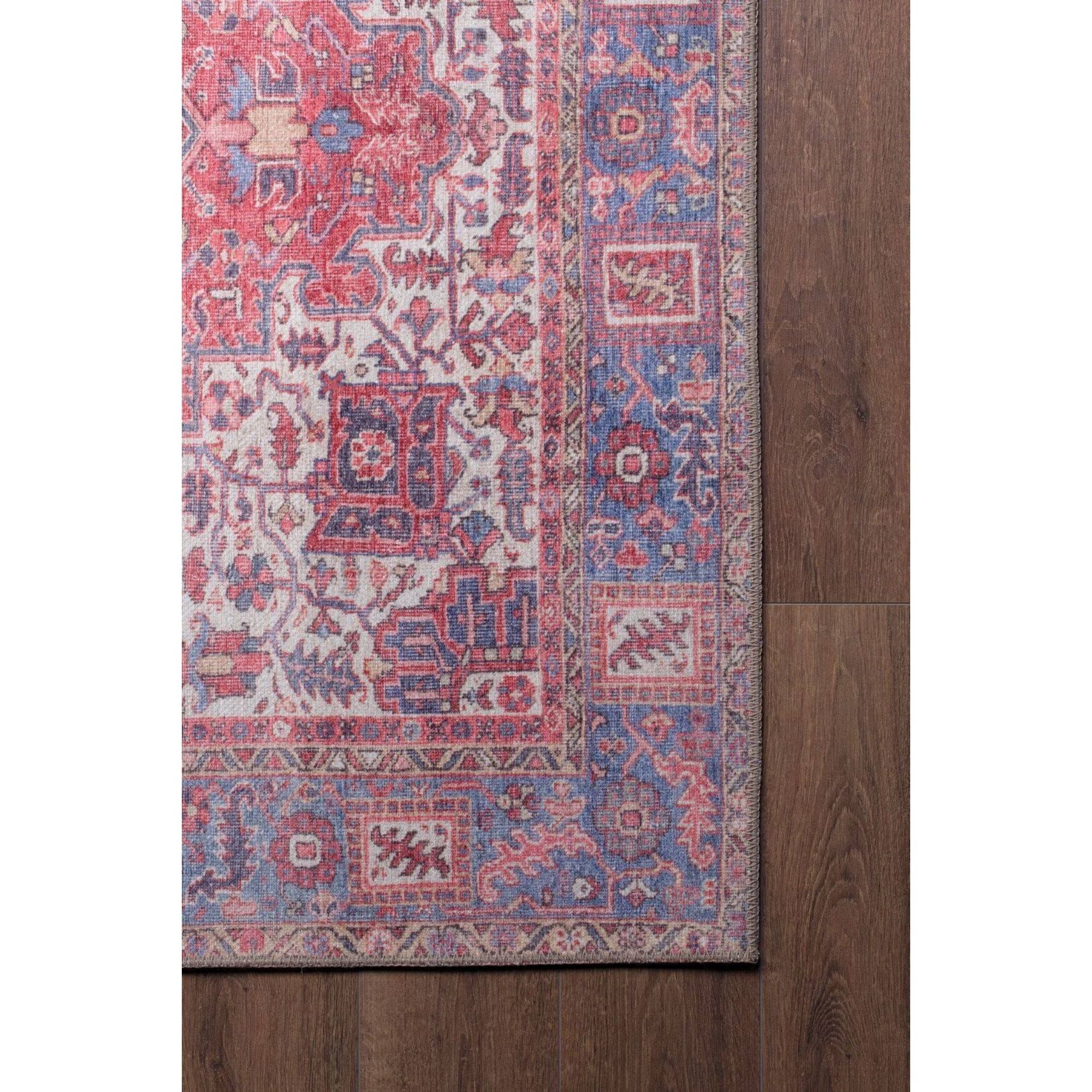 Digital Print Area Rug - Washable Non Slip Red Medallion Cotton Carpet