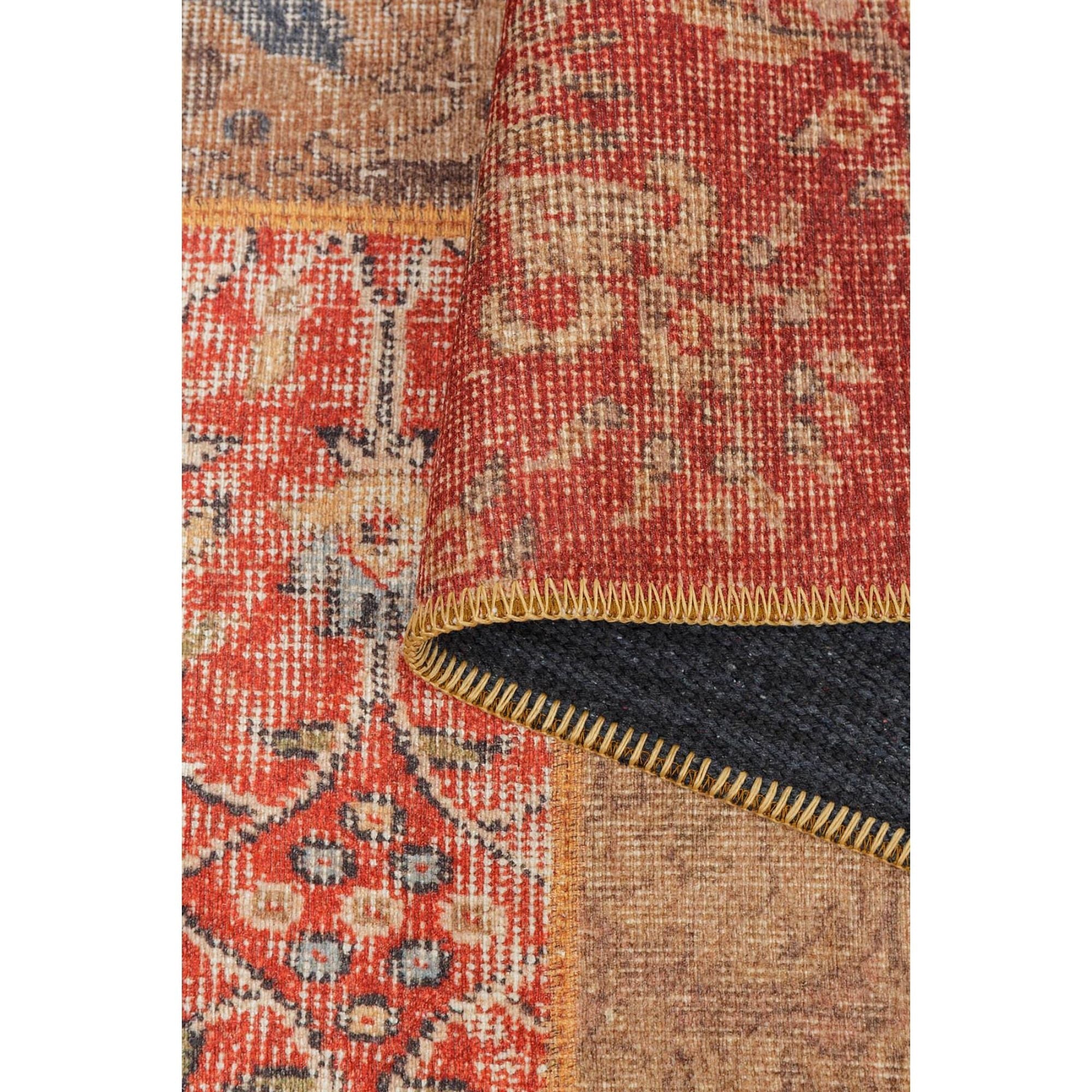 Digital Print Area Rug - Washable Non Slip Red Patchwork Cotton Carpet With Soft Microfiber