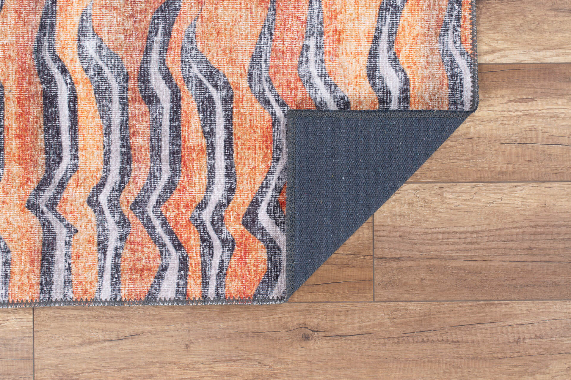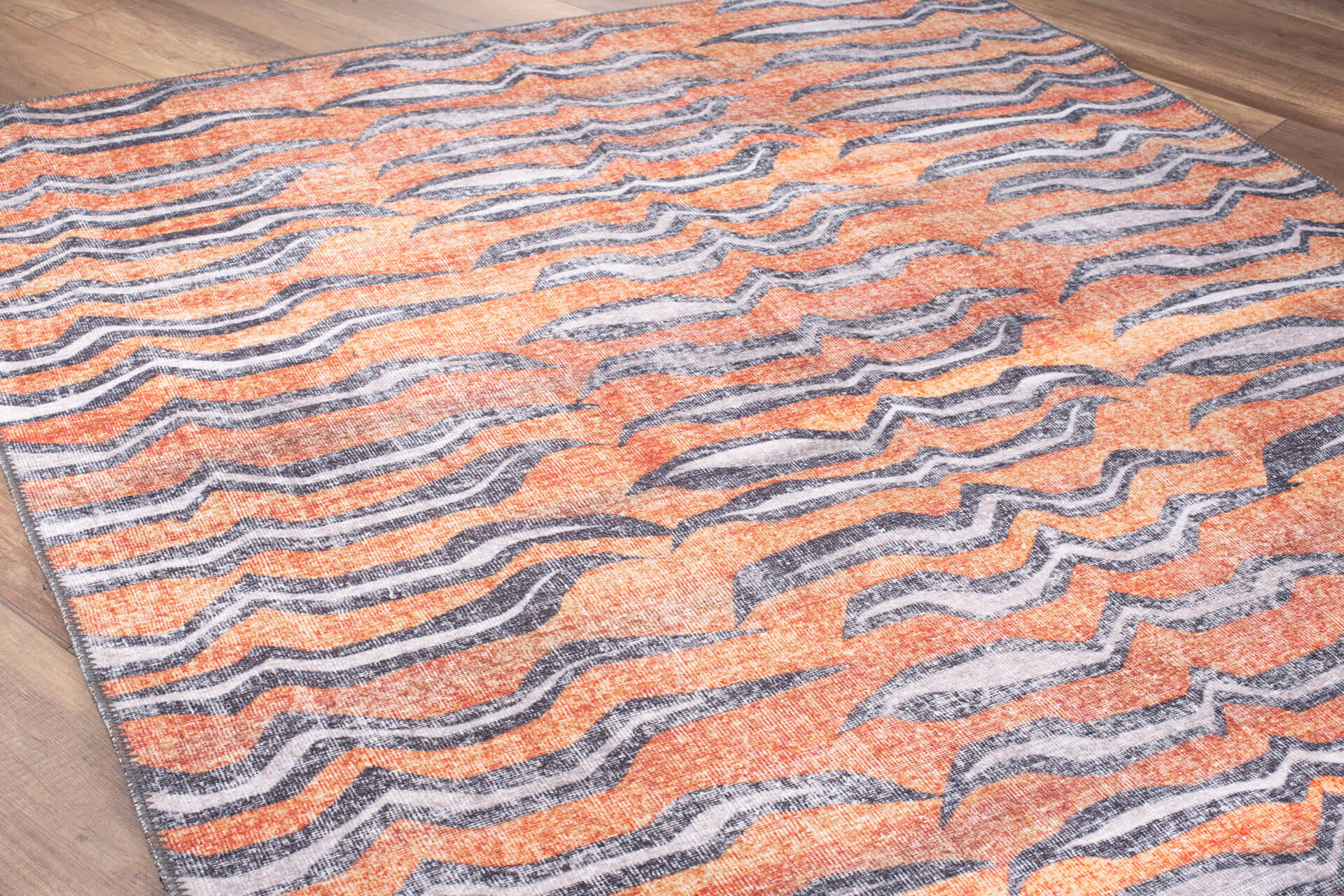 The orange striped area rug is a washable non slip cotton area rug designed to bring warmth and style to your living room. Crafted with soft microfiber and polyester woven yarn, this decorative floor covering combines the durability of a machine made carpet with the luxurious hand feel rug experience. The high resolution print technology delivers vibrant colors and sharp details on the striped pattern rug, enhancing any modern style carpet collection.