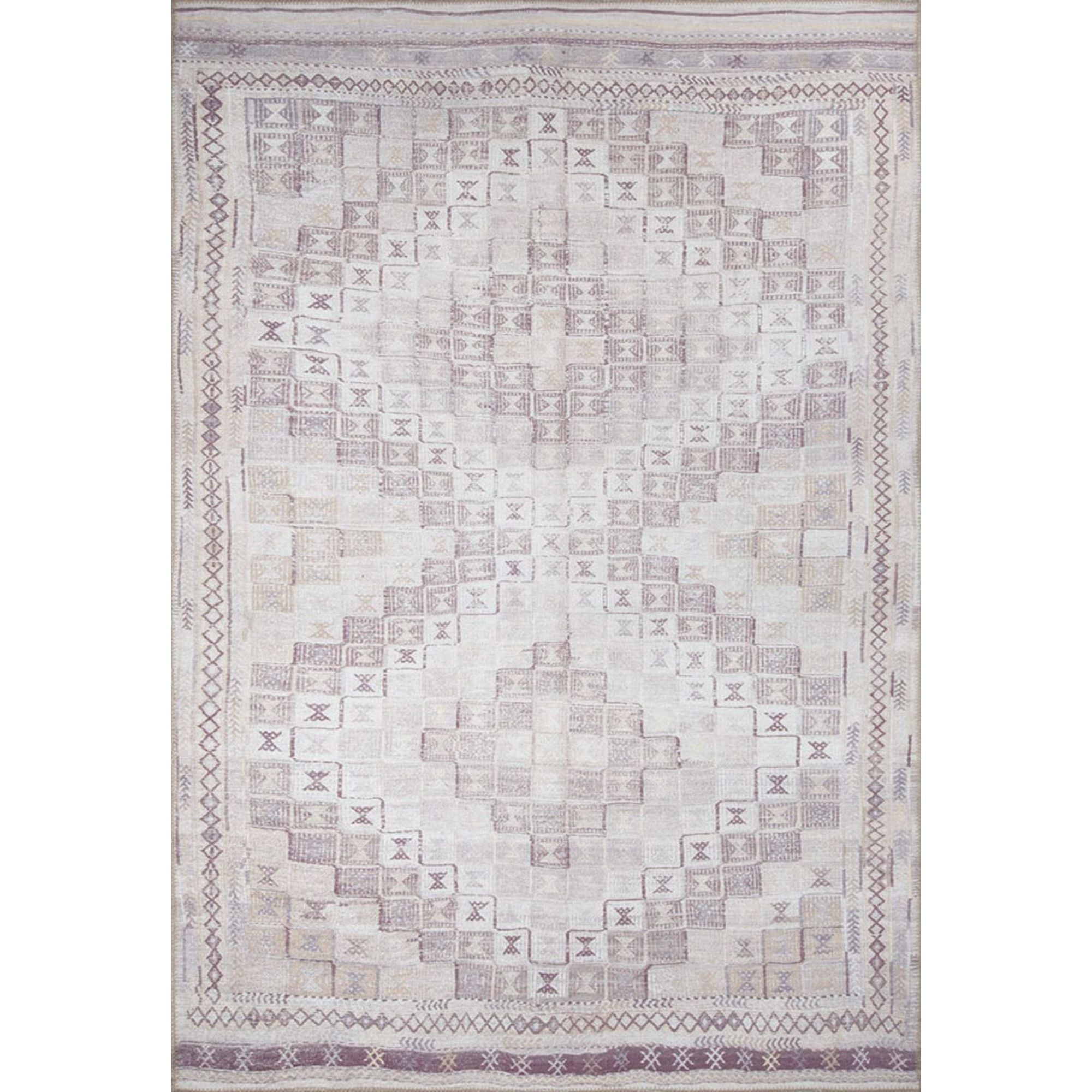 This beige cotton rug is machine made with advanced technology to deliver the feel of a handwoven carpet. The thick decorative rug is heavy and seated firmly to prevent slipping, making it safe and comfortable for daily use. Its washable area rug design allows easy cleaning, keeping your floors fresh and allergen-free.