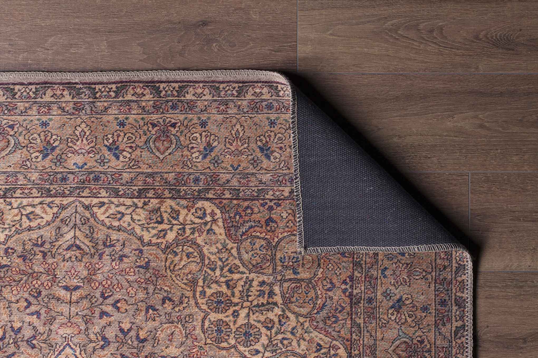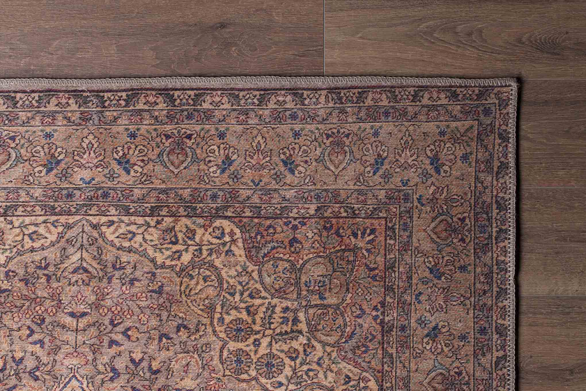 - Features a brown medallion rug pattern created using advanced digital printing technology for vibrant, fade-resistant colors
