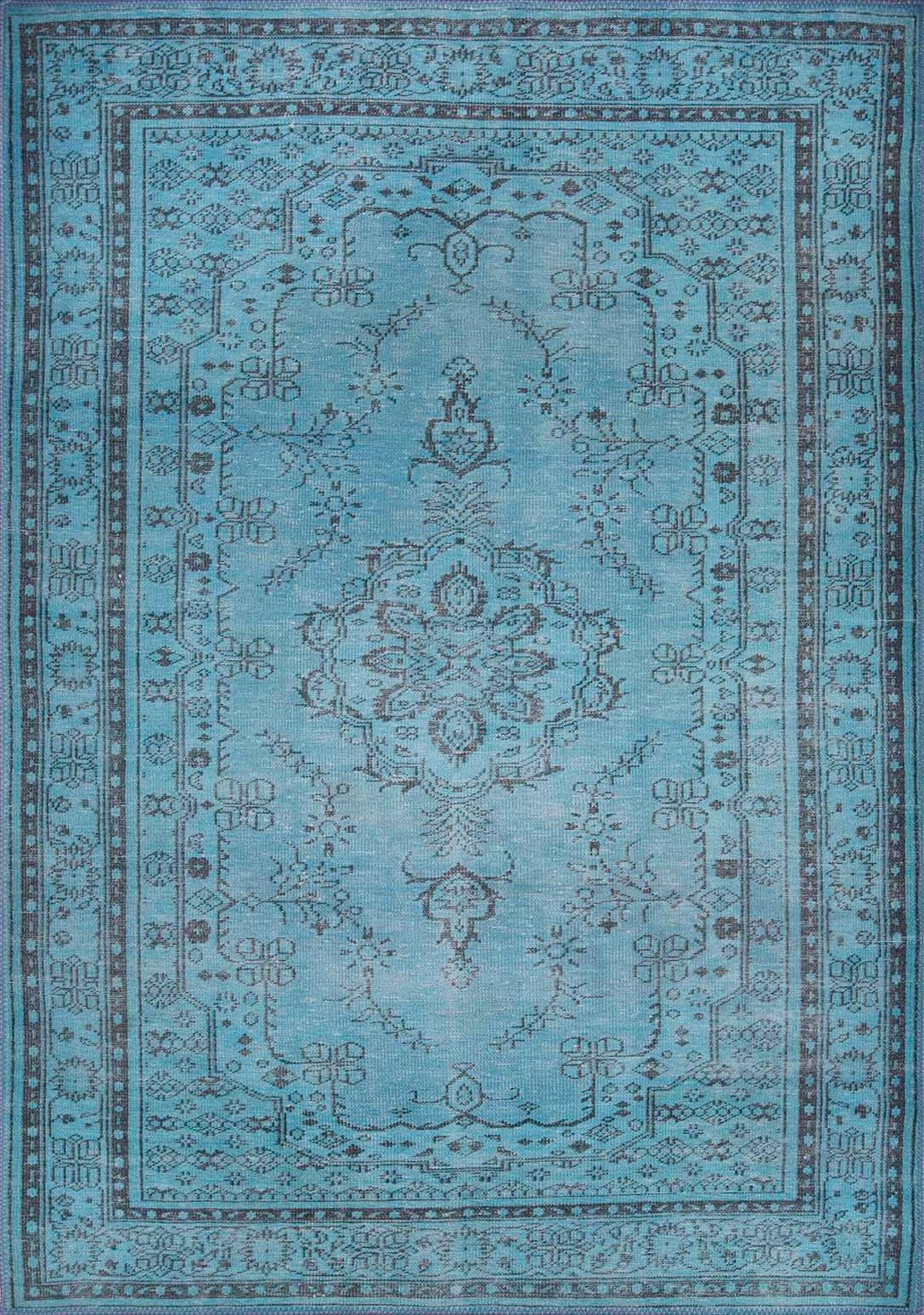 - High resolution print rug technology for vivid turquoise medallion rug patterns