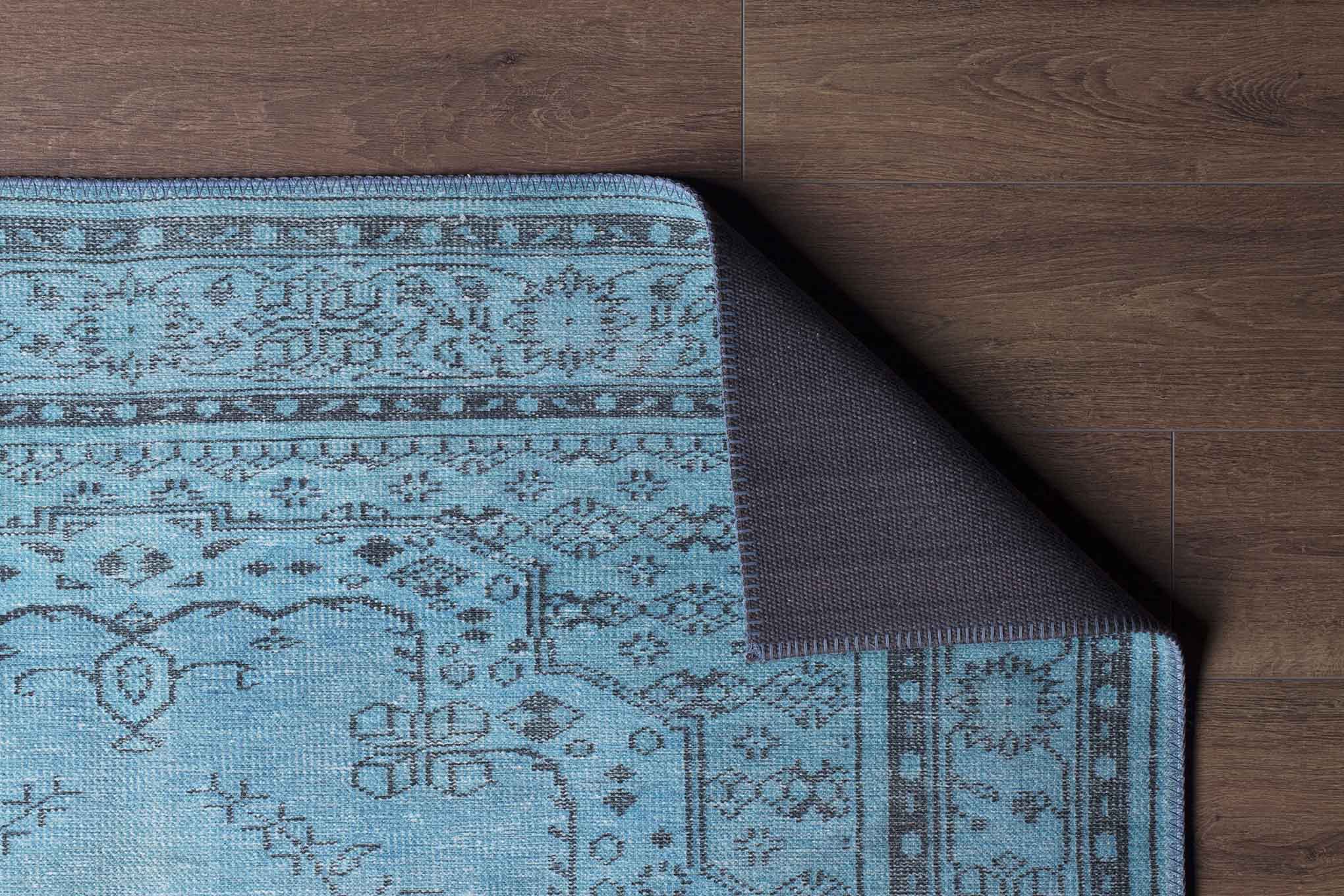 Upgrade your home with this exquisite turquoise medallion rug that combines modern technology with traditional comfort. The microfiber rug fabric woven with polyester yarn carpet ensures resilience against wear and tear, while the non-slip backing enhances safety for families with children or pets. Enjoy the ease of cleaning thanks to its washable area rug feature, maintaining a clean environment effortlessly.