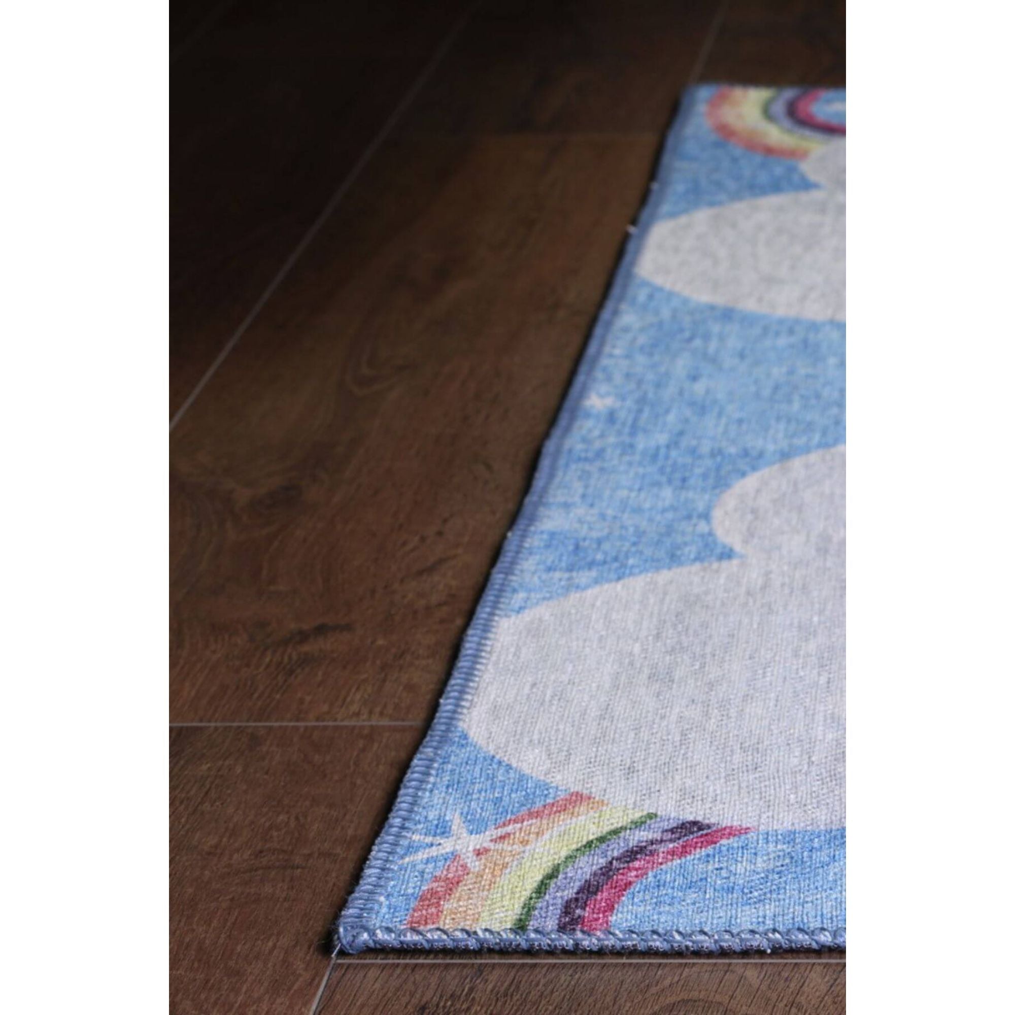 Kids Digital Print Rug – Washable Non Slip Blue Polyester Woven Carpet