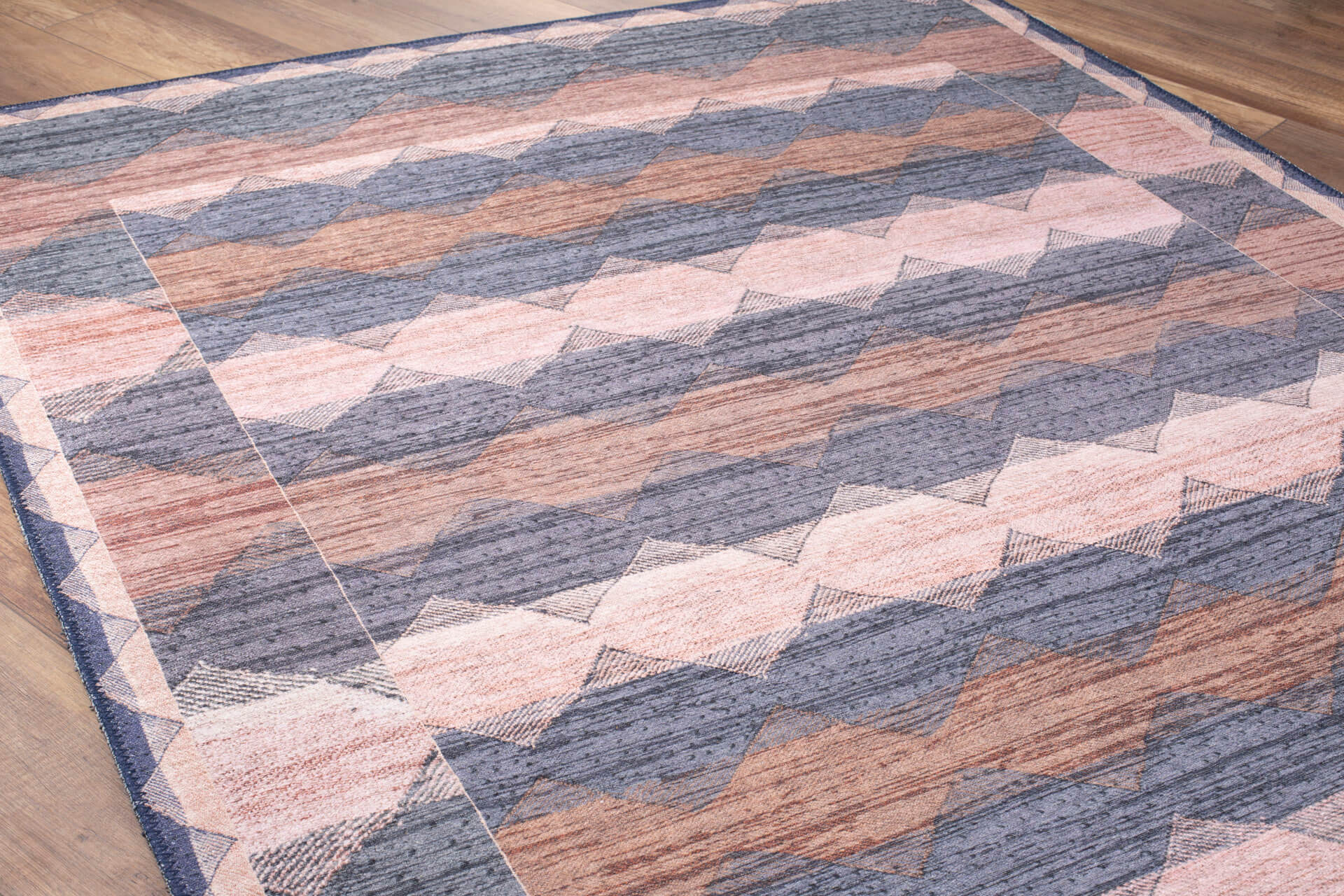 This grey brown rug measures [insert precise dimensions], making it an ideal modern floor rug for various spaces. Its non slip backing ensures safety and stability on hardwood, tile, or laminate floors. The geometric cotton rug’s digital print rug design adds a contemporary touch, perfect for any living room or bedroom setting.