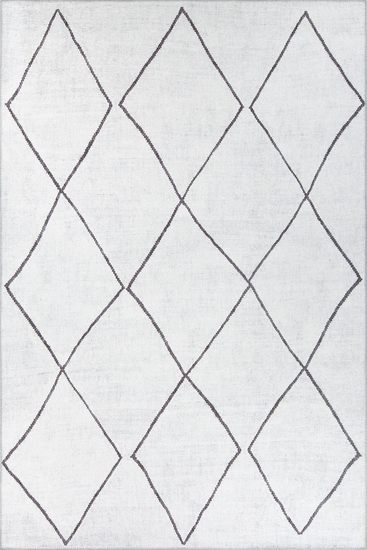 White Geometric Area Rug - Washable Non Slip Cotton Area Rug with Soft Microfiber