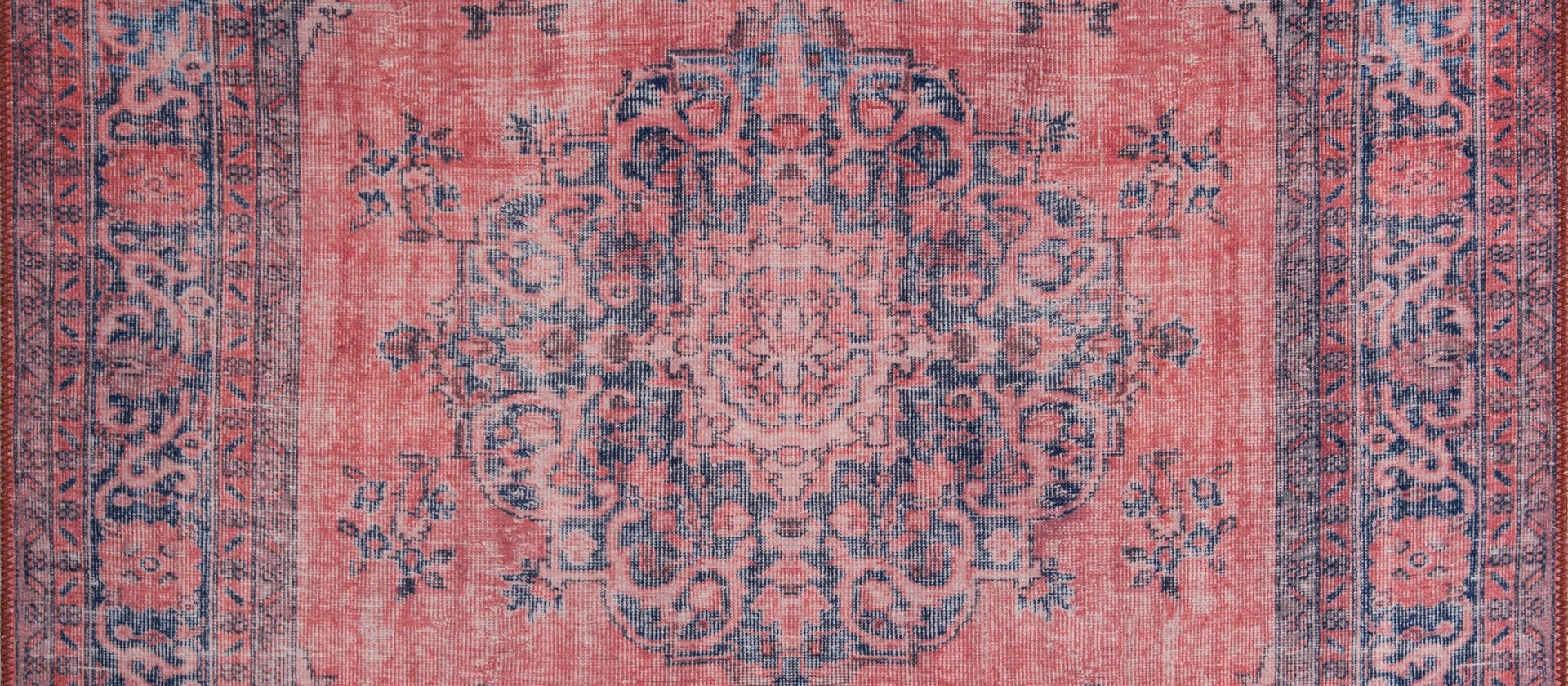 This cotton area rug is crafted with a high resolution print system that mimics the look and feel of hand-woven carpets, providing intricate red medallion designs that stand out as a decorative floor covering. The washable area rug is engineered for easy maintenance, while its non-slip backing ensures safety on various floor types. The heavy thick rug construction adds comfort underfoot and durability for high-traffic living room spaces.