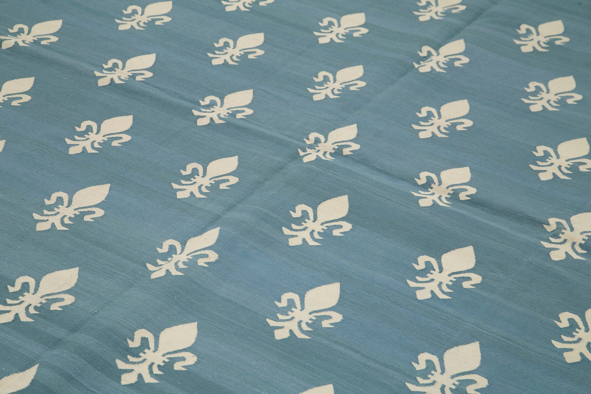 Handmade Area Rug - Blue Geometric Cotton Wool Rug, Durable Turkish Wool Carpet 10'2"x14'0"