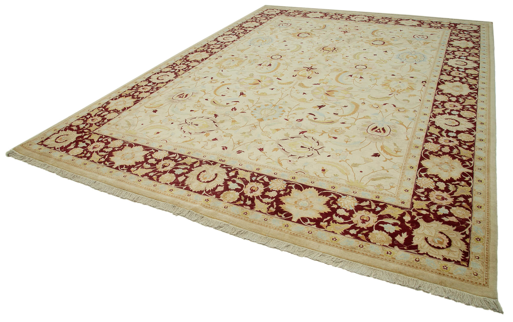Handmade Area Rug - Classic Beige Turkish Hand Knotted Cotton Wool Carpet 10'x13'10''