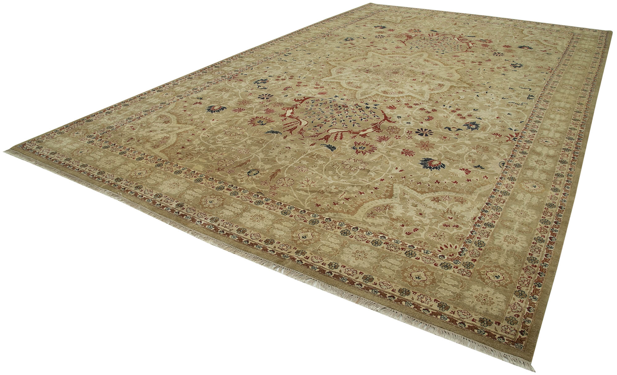 Tebriz Beige Classic Cotton Wool Handmade Area Rug 10'10'' x 17'7''