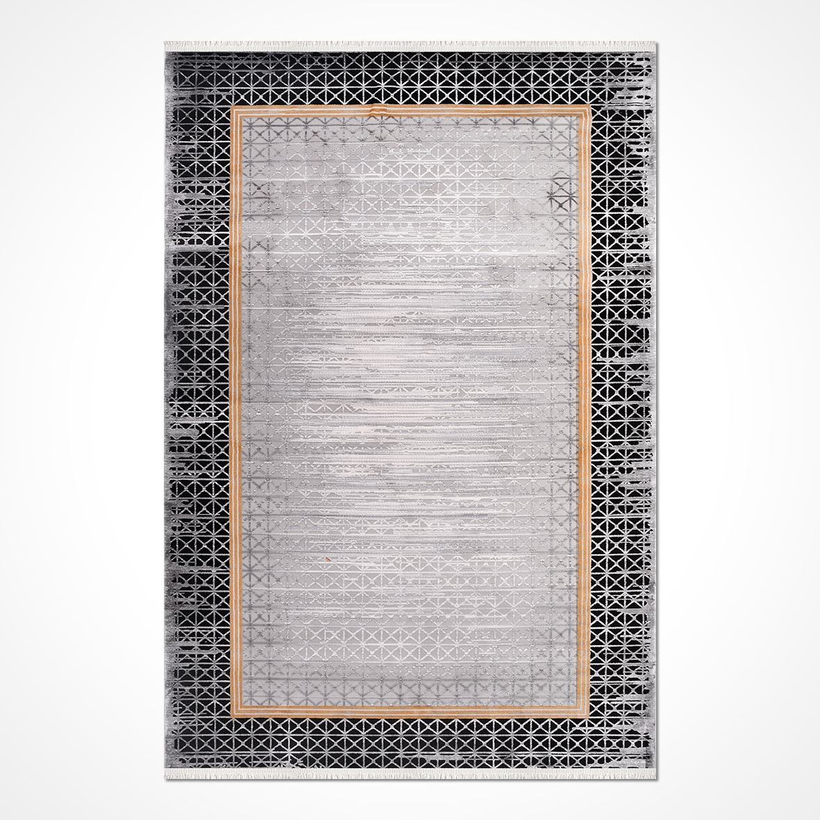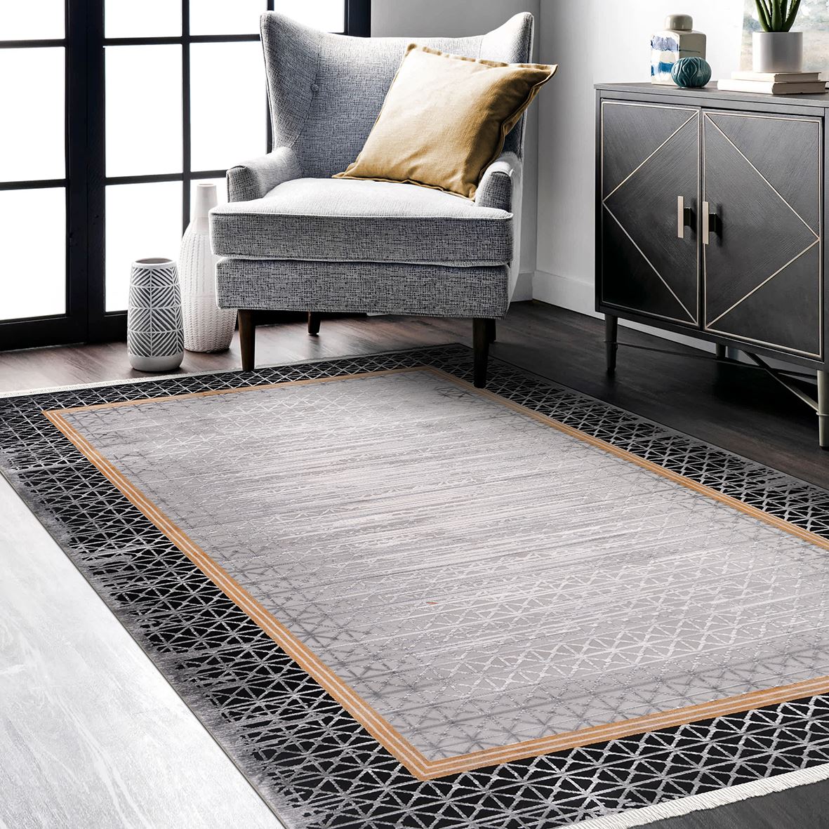 Viscose Area Rug – Machine Made Grey Frame Rug with Overlocked Edge Finish