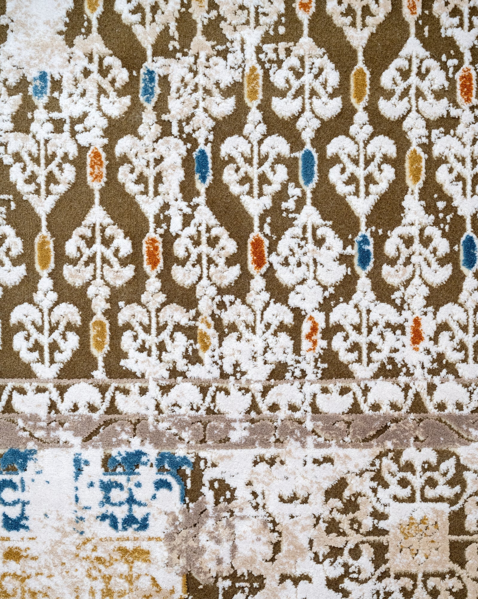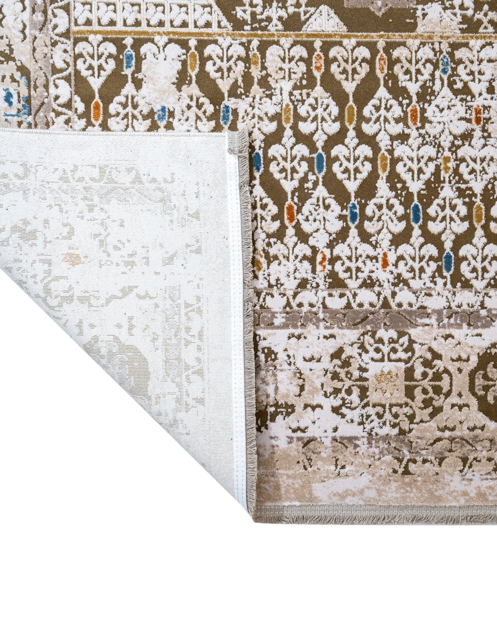 The Vintage Viscose Area Rug is a machine made rug designed to bring warmth and style to your living room. This brown vintage carpet features fringed edges that add a decorative touch while its soft viscose carpet fibers provide a comfortable feel underfoot. Crafted as a machine woven rug, it combines durability with the classic charm of vintage style rug aesthetics to enhance any modern area carpet setting.