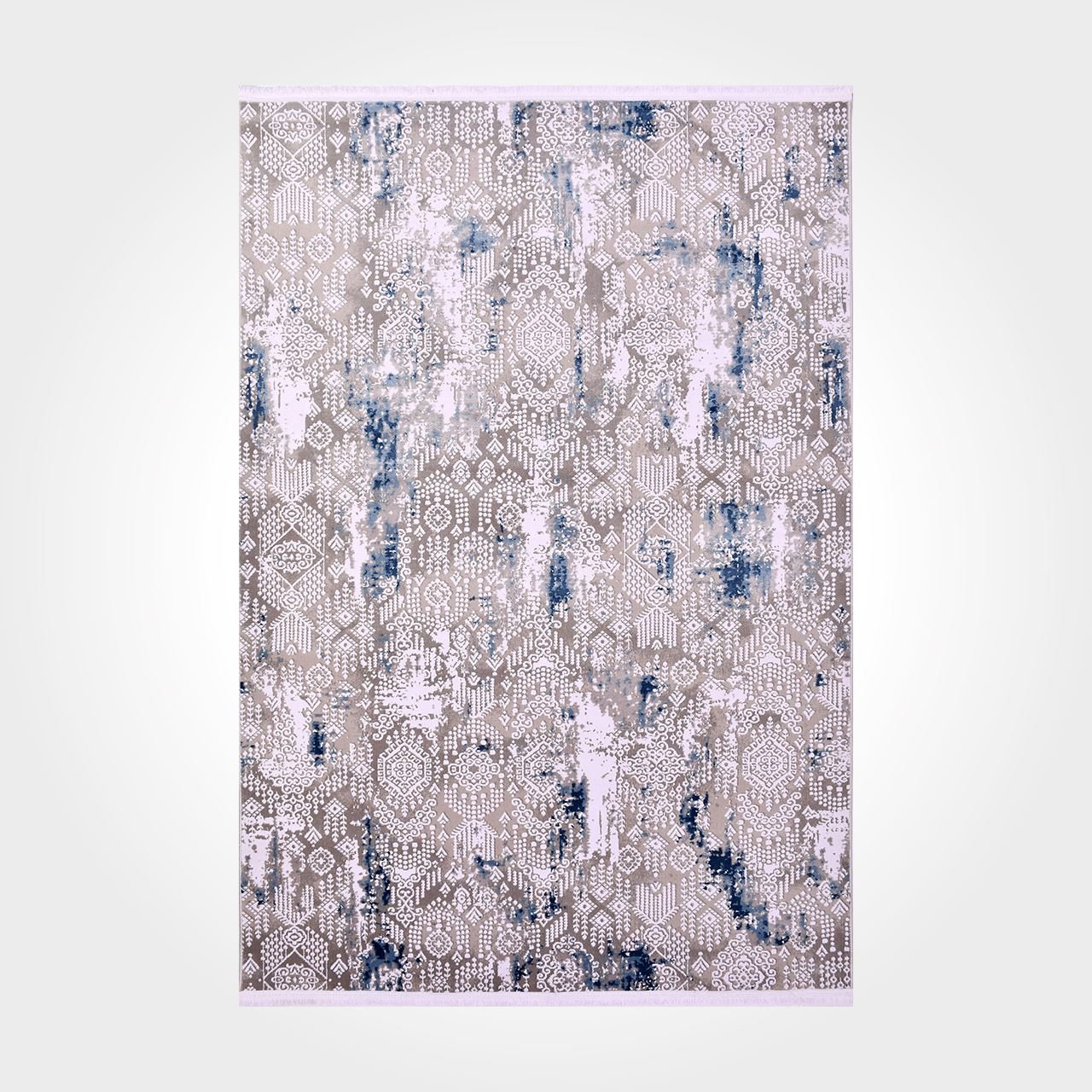 Modern Area Rug - Machine Made Rug With Grey Blue Acrylic Yarn & Overlocked Edge