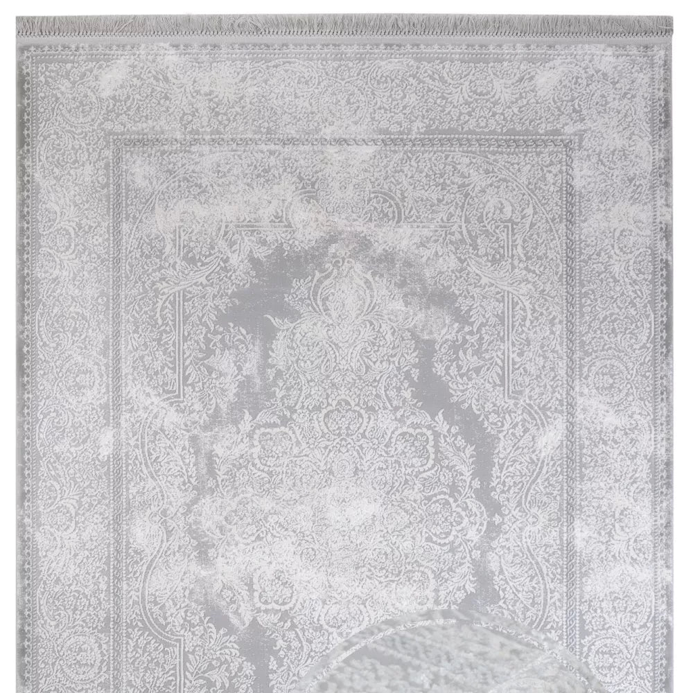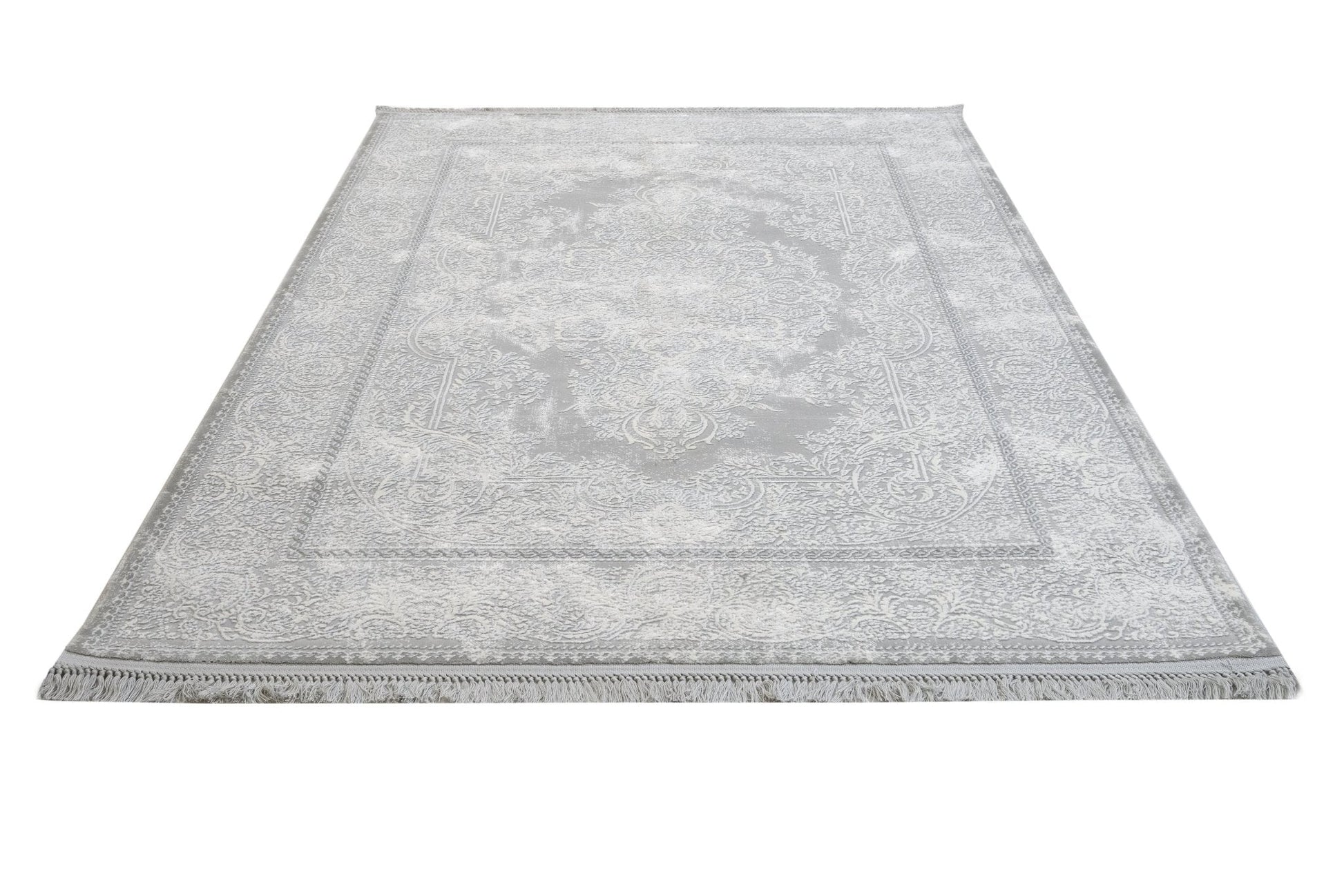 Machine Made Area Rug | Classic Grey Acrylic Rug with Fringed Edges