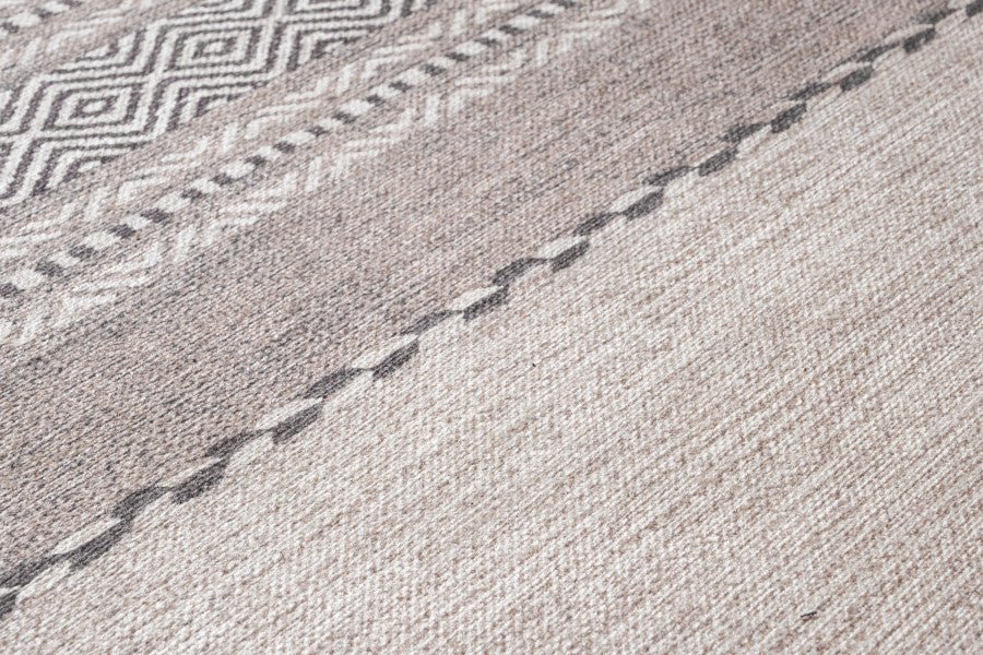 This beige geometric area rug has been tested for durability and colorfastness, ensuring it maintains its appearance even after repeated washing. Pia Monte stands behind this product with a satisfaction guarantee, reflecting our commitment to quality and customer happiness.
