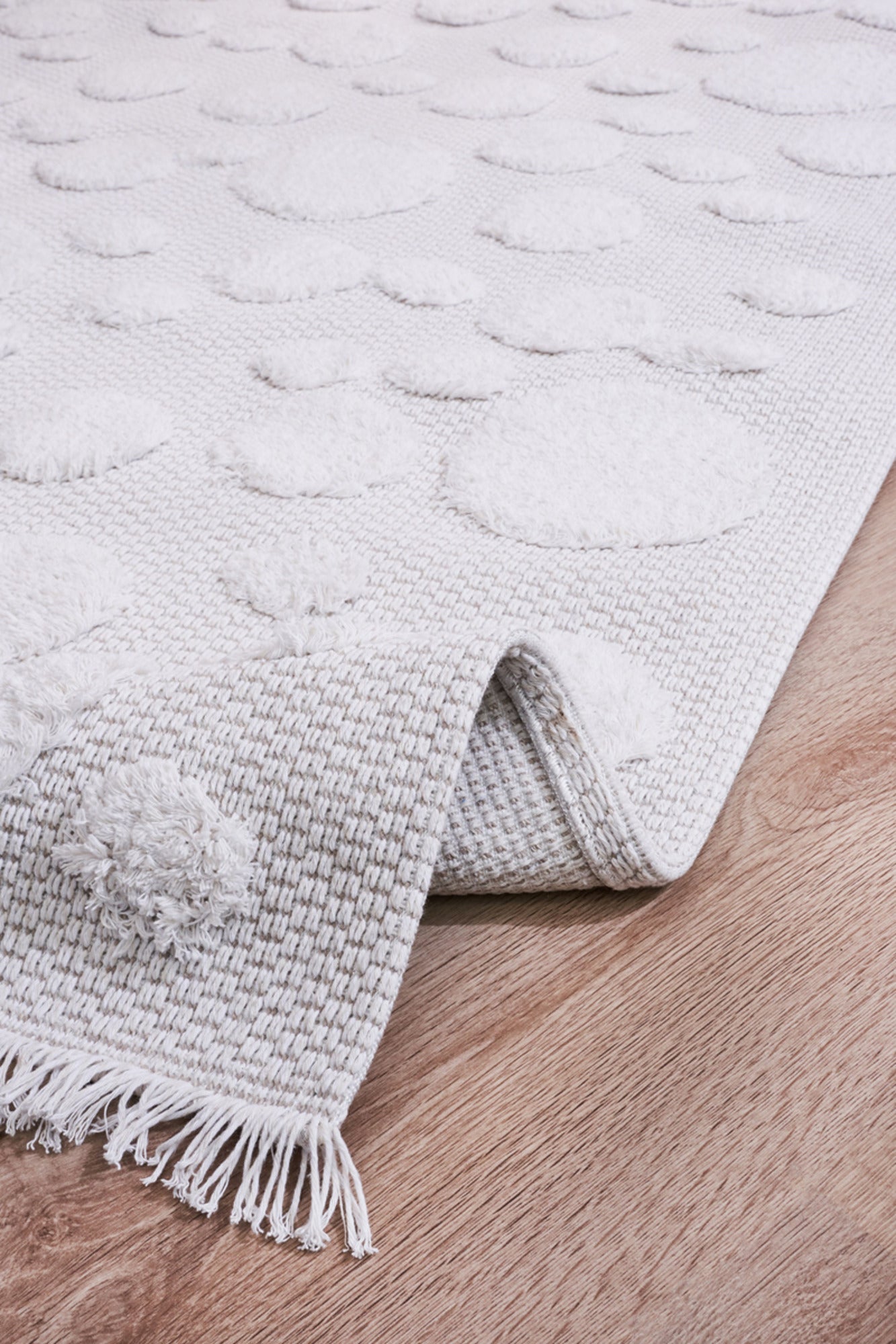 Machine Made Area Rug – Cream Geometric Cotton Yarn Rug for Living Room