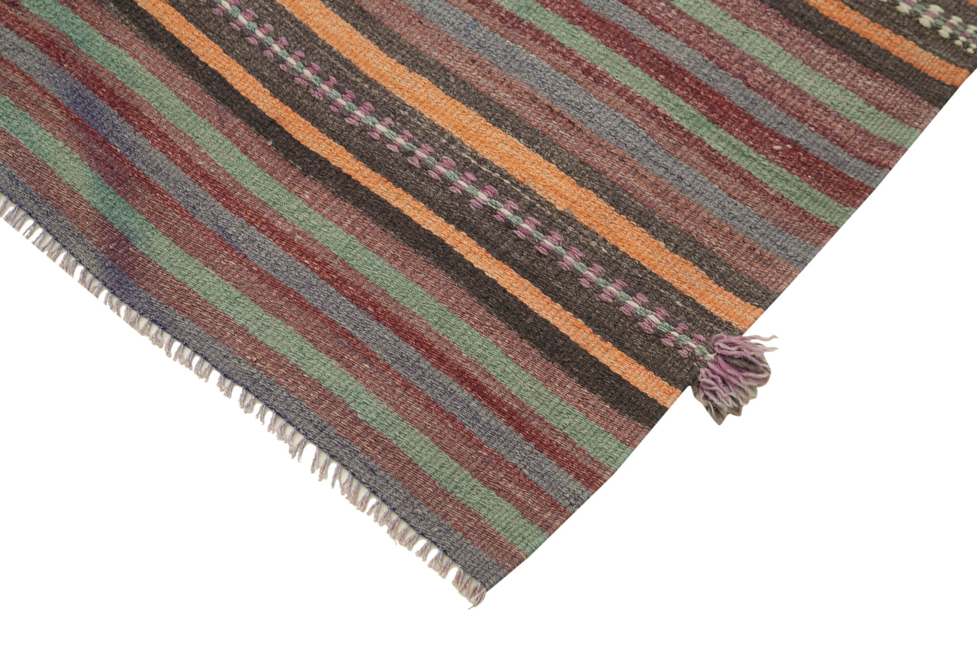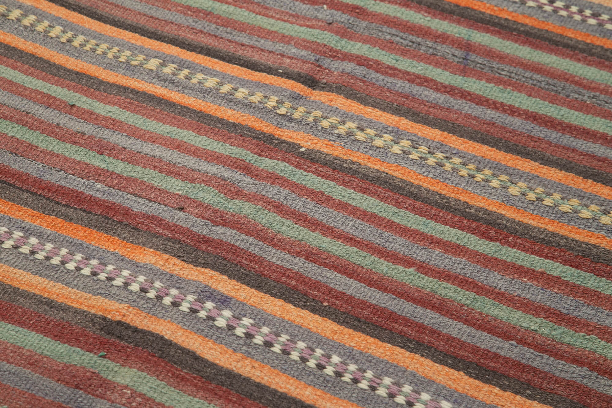 Anatolian Kilim Orange Striped Cotton Wool Handmade Area Rug 4'5'' x 8'7''
