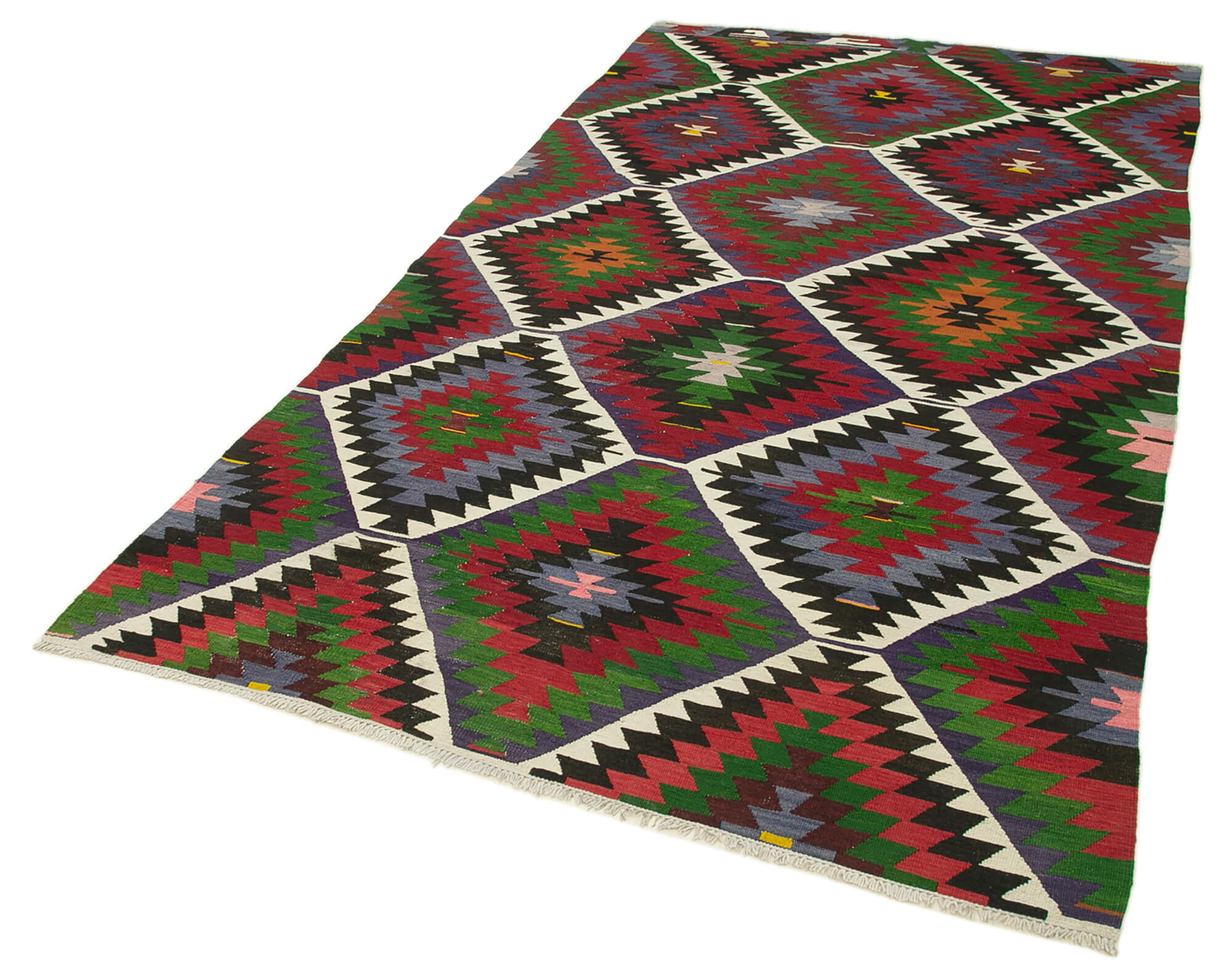 Anatolian Kilim Red Geometric Cotton Wool Handmade Area Rug 4'11'' x 9'0''