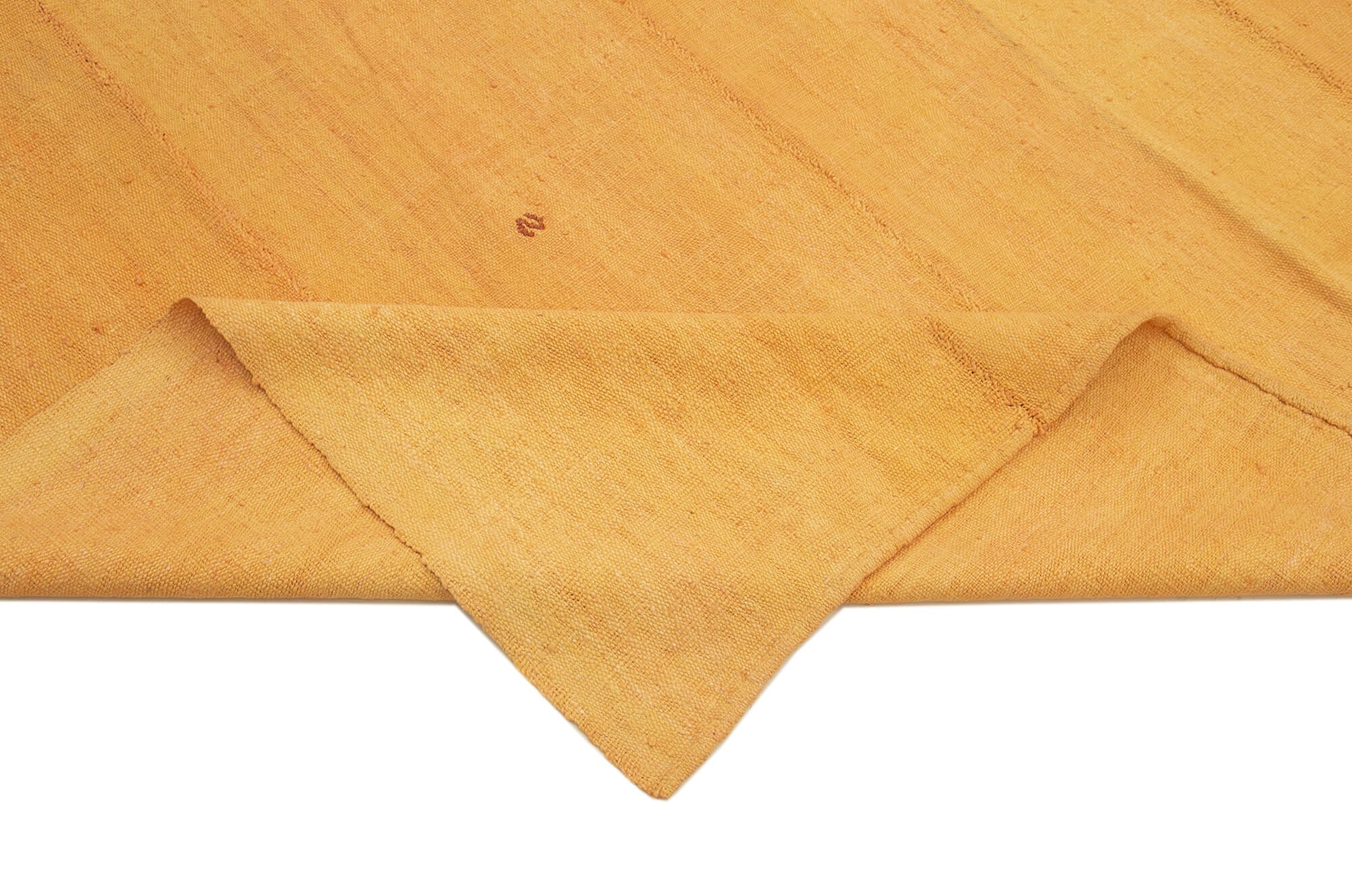 Anatolian Kilim Yellow Striped Cotton Wool Handmade Area Rug 7'0'' x 10'11''