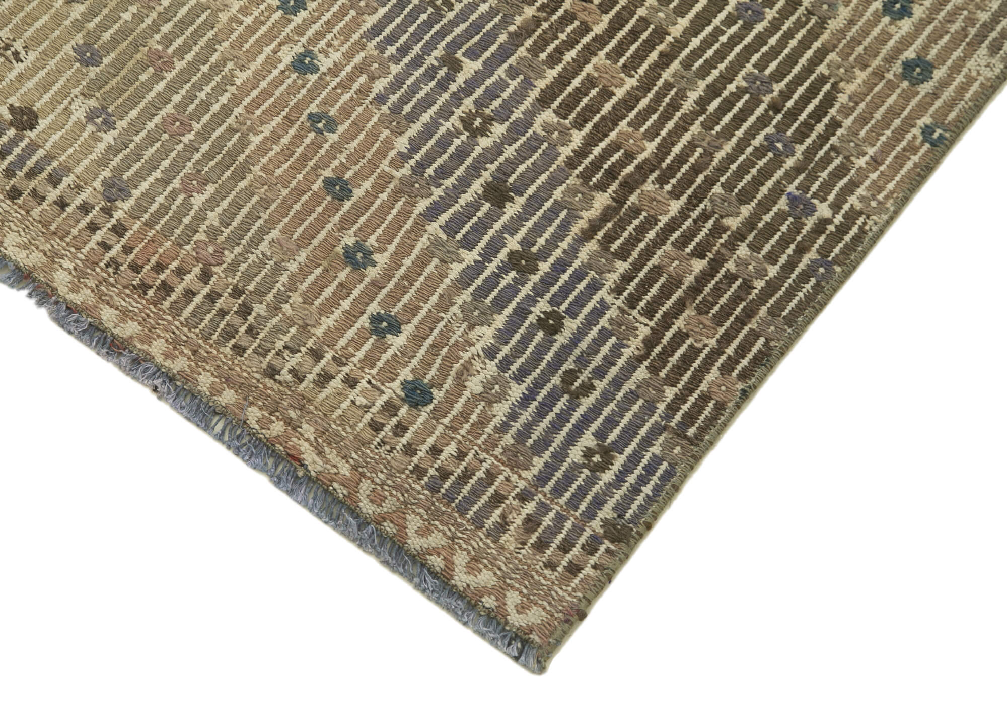 Anatolian Runner Beige Striped Cotton Wool Handmade Area Rug 3'4'' x 8'11''