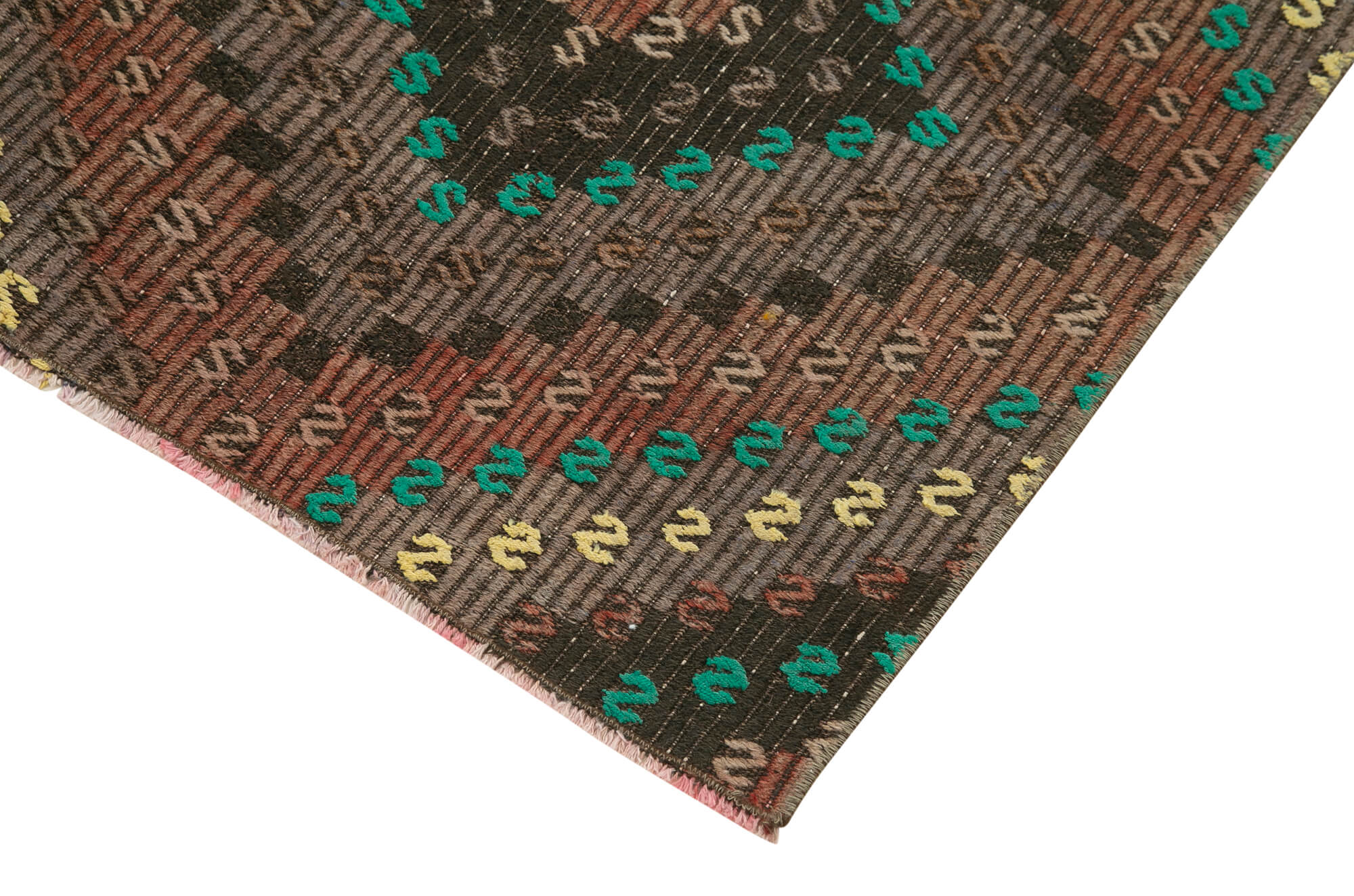 Anatolian Runner Brown Striped Cotton Wool Handmade Area Rug 2'6'' x 9'5''