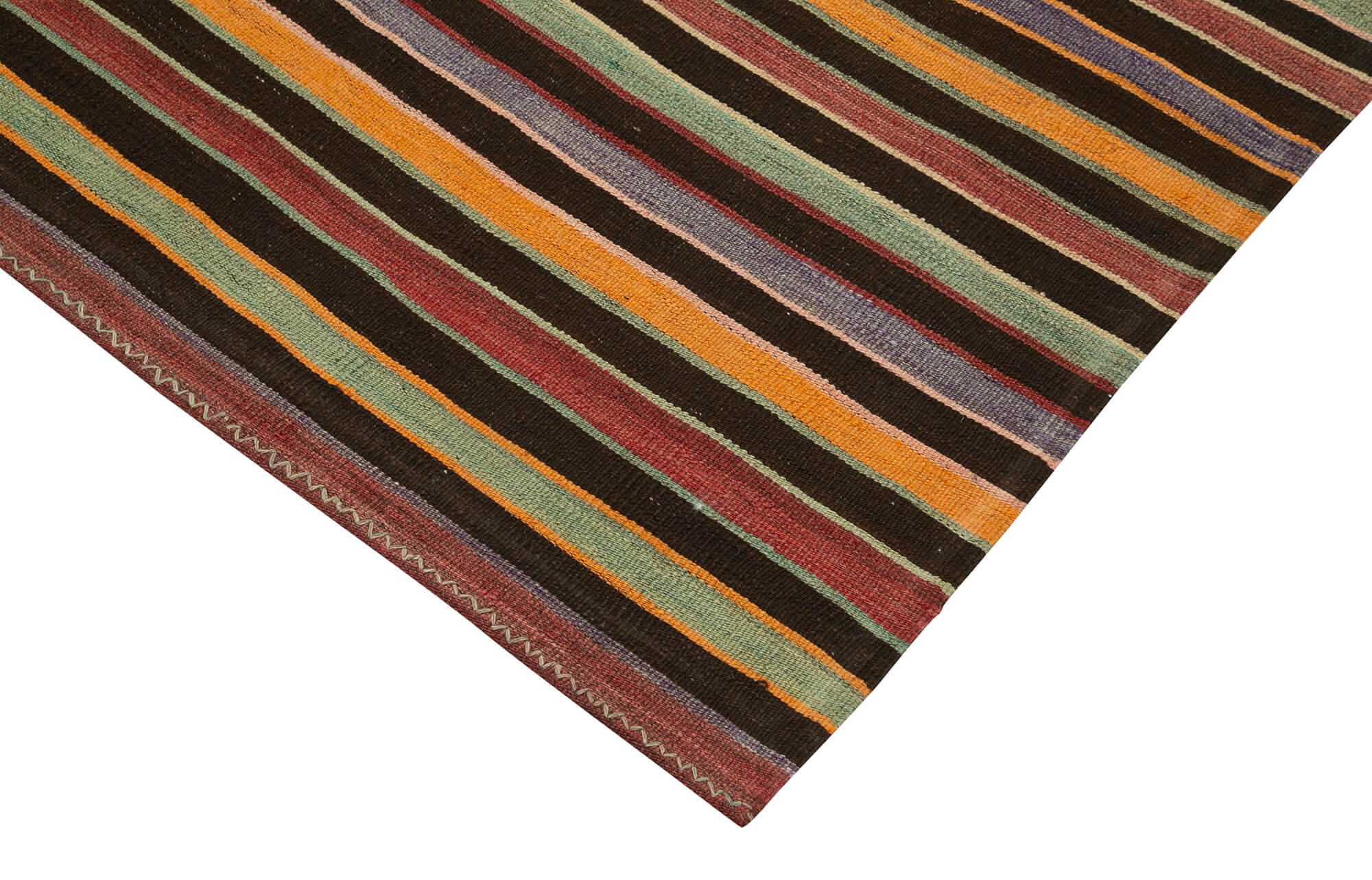Anatolian Runner White Striped Cotton Wool Handmade Area Rug 4'4'' x 11'4''