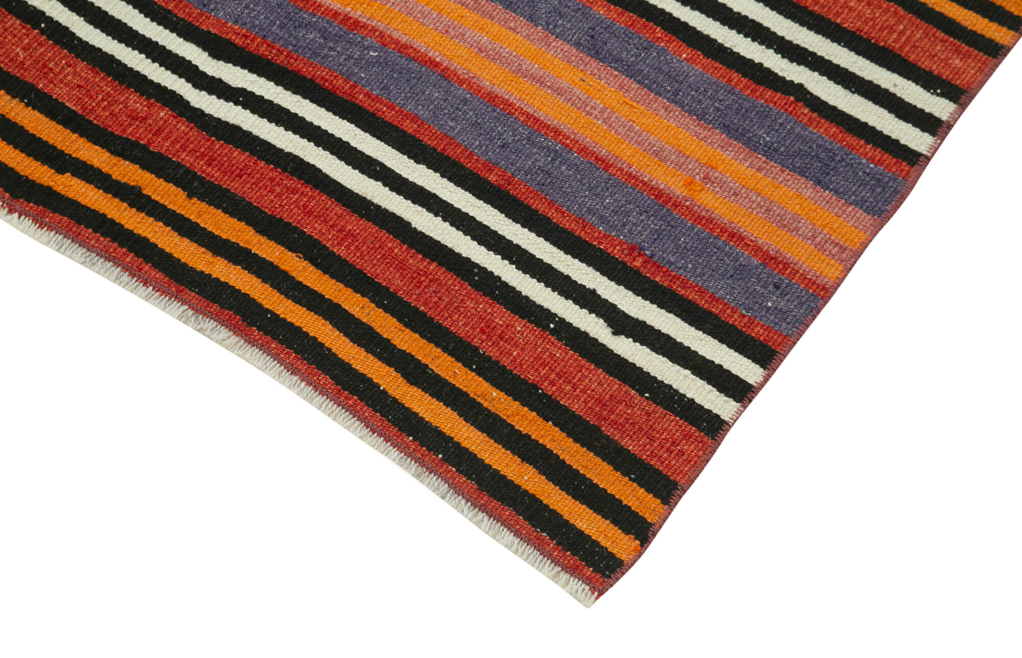 Anatolian Runner White Striped Cotton Wool Handmade Area Rug 2'9'' x 10'10''