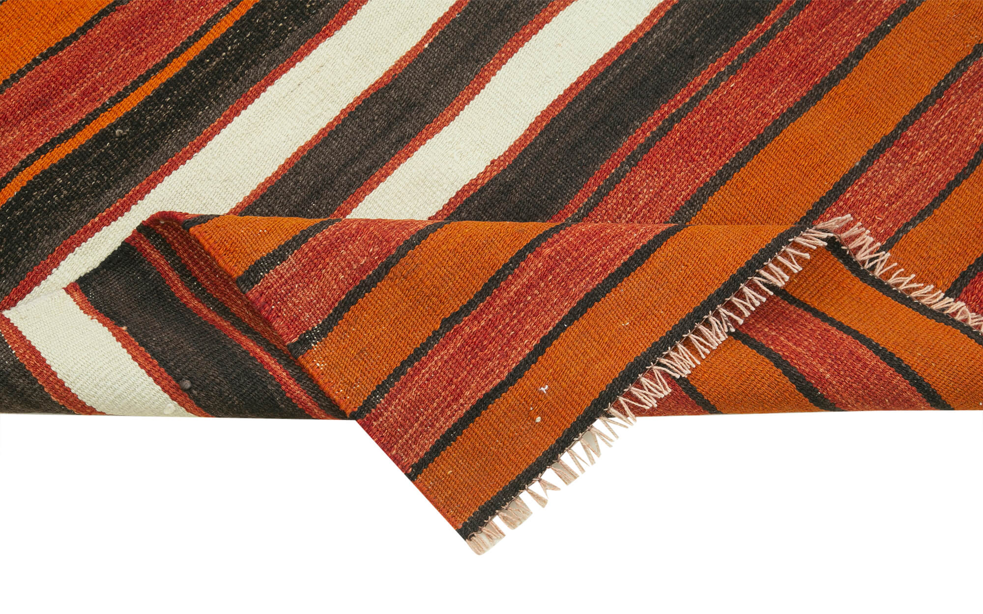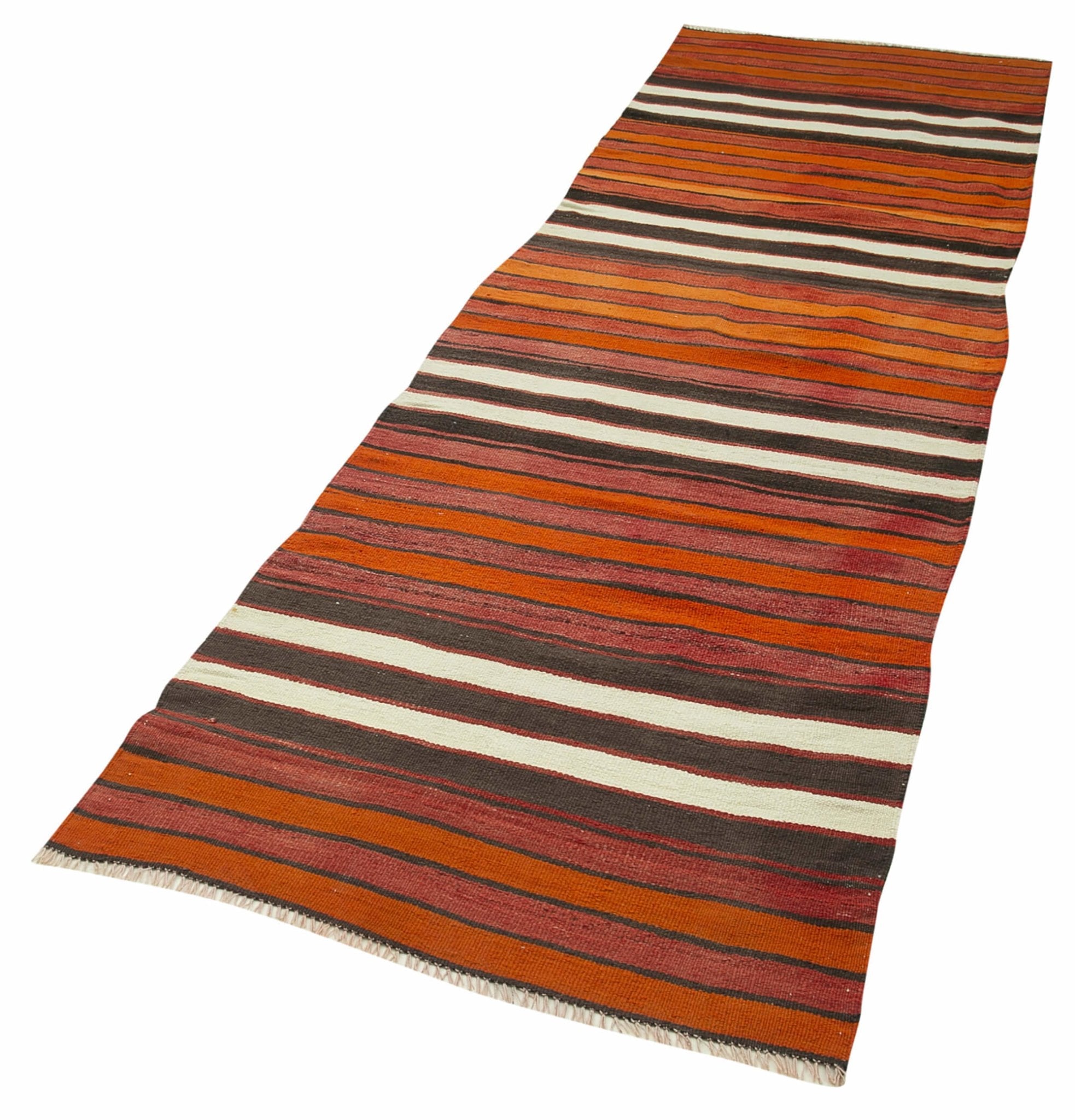 Anatolian Runner White Striped Cotton Wool Handmade Area Rug 3'0'' x 10'6''