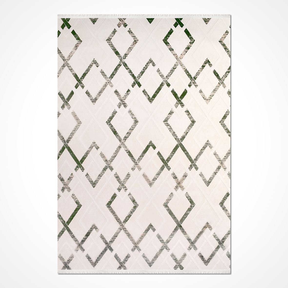 Bamboo Viscose Area Rug - Machine Made Geometric Cream Green Rug, Washable Non Slip