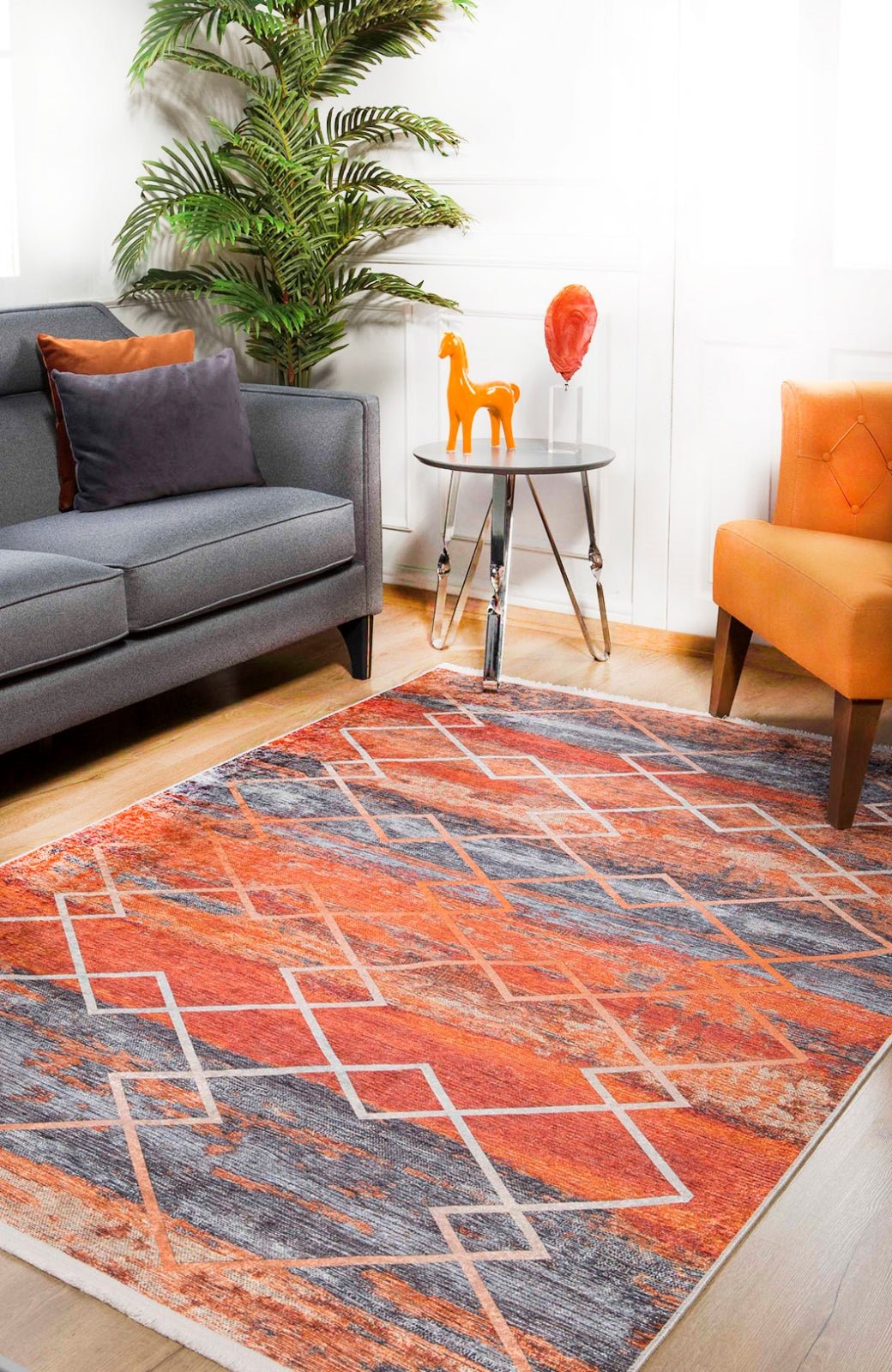 Designed by Halınet, this orange geometric area rug undergoes rigorous quality testing to ensure long-lasting performance and customer satisfaction. Its precise dimensions provide full coverage in standard room sizes while maintaining a lightweight profile for easy handling. Whether placed in your living room, hallway, or bedroom, this rug transforms your space with comfort and style. Upgrade your flooring with a rug that balances aesthetic appeal with practical benefits, ensuring a safe, clean, and inviting atmosphere in your home.