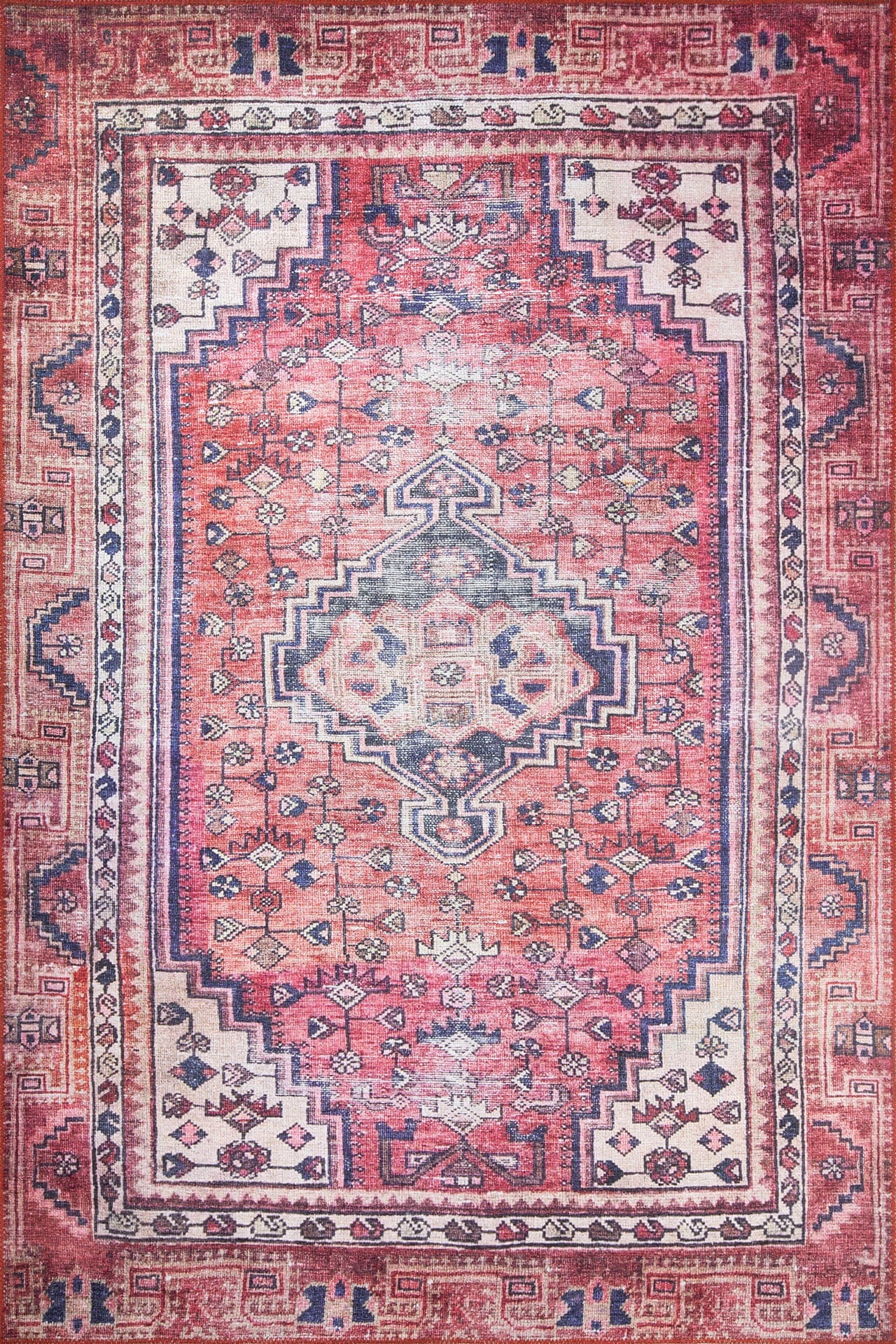 Digital Print Area Rug - Red Medallion Cotton Washable Non Slip Carpet