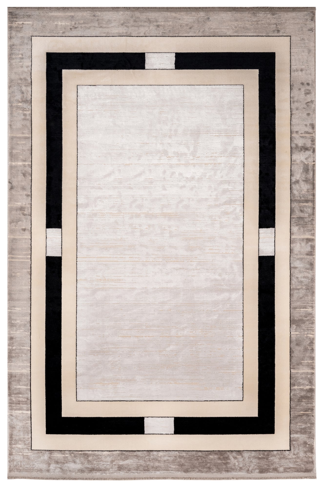 This viscose area rug combines elegance and durability to elevate your living space with a stylish floor covering designed for modern homes. Crafted from soft viscose, this machine made rug delivers a plush feel underfoot while maintaining long-lasting quality. The beige frame carpet features fringed edges that add a subtle decorative touch, making it a perfect addition to any living room or home decor carpet collection. With its non slip area rug backing, it stays securely in place, ensuring safety and comfort throughout daily use.