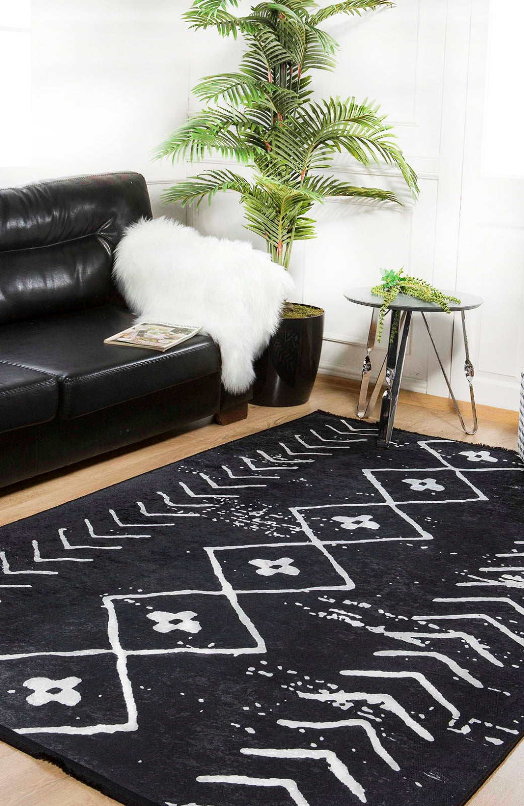 Black Geometric Area Rug – Durable Digital Print Rug With Non Slip Carpet Backing
