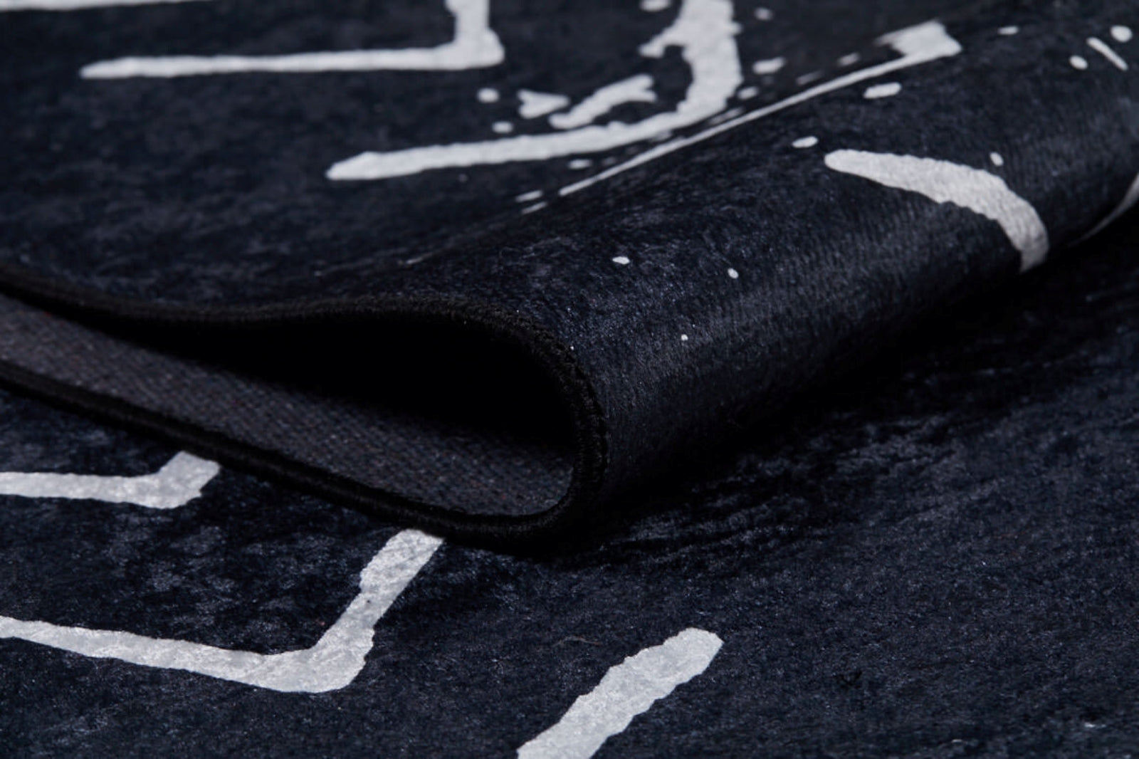 The black geometric area rug from Halınet is a durable area rug designed to enhance your living room carpet and hallway area rug needs with a stylish floor covering that combines function and modern design. This black geometric area rug features a high-quality digital print rug pattern that adds a contemporary touch to any home decor rug setting while providing a dust free floor mat solution. Crafted with antibacterial rug material, it promotes hygiene by resisting allergens and bacteria, ensuring a clean and healthy environment. Its non slip carpet backing keeps the rug securely in place, preventing slips and falls for safer use in busy households.