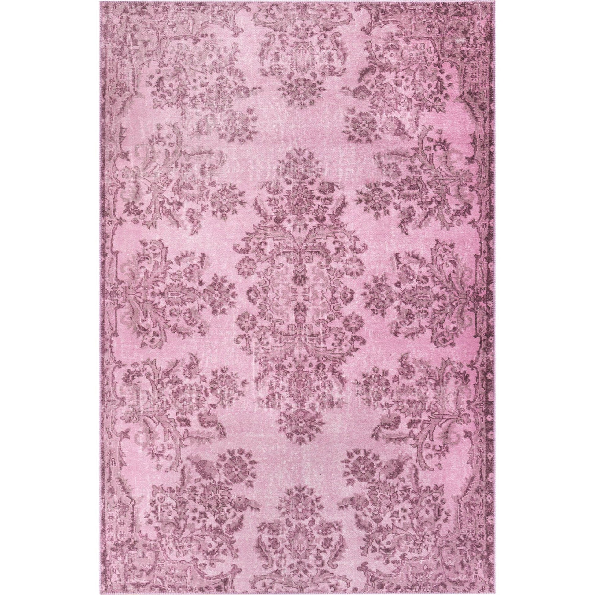 Pink Vintage Area Rug - Washable Non Slip Cotton Microfiber Carpet for Living Room