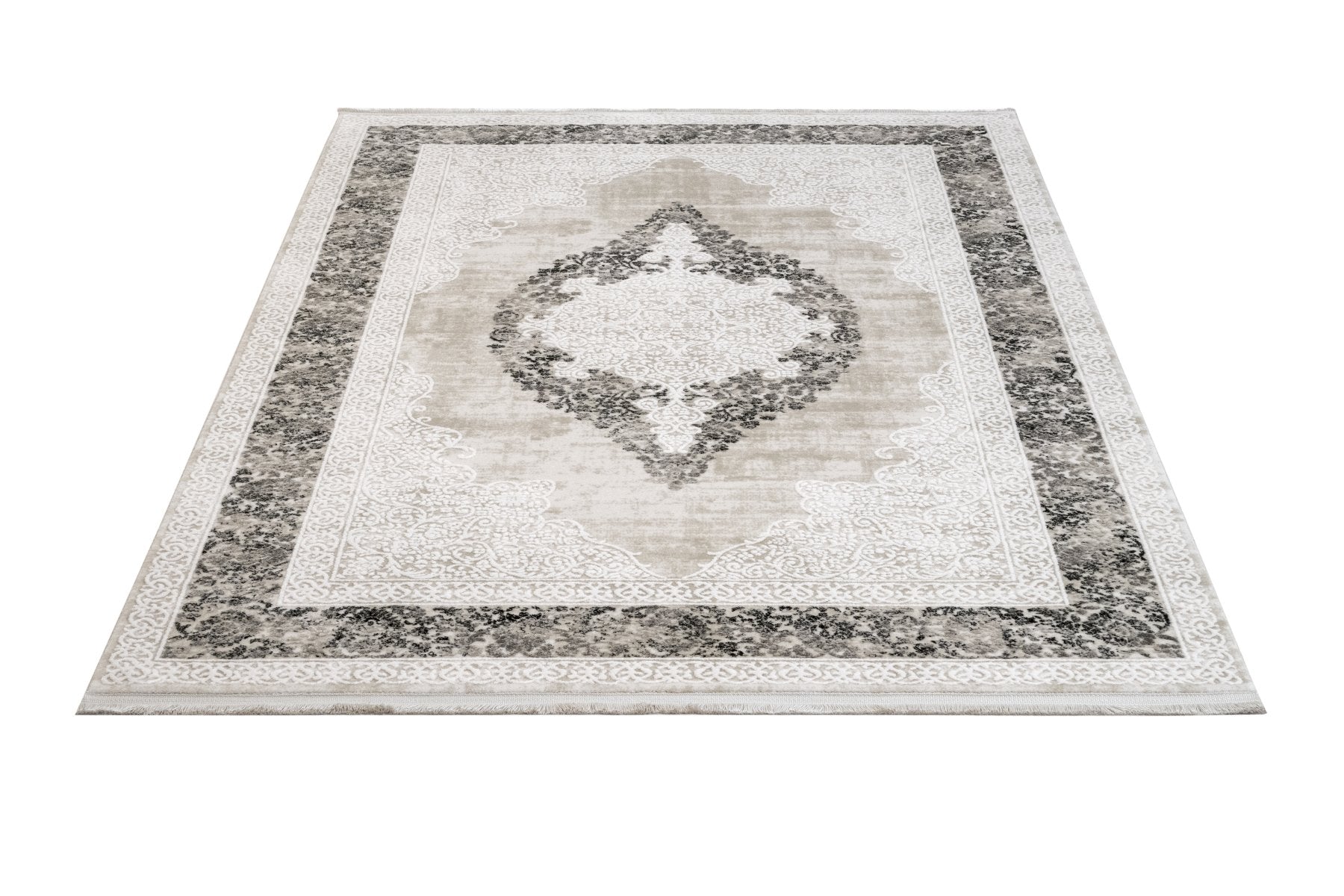 Classic Area Rug – Anthracite Machine Made Rug with Fringed Edges for Living Room