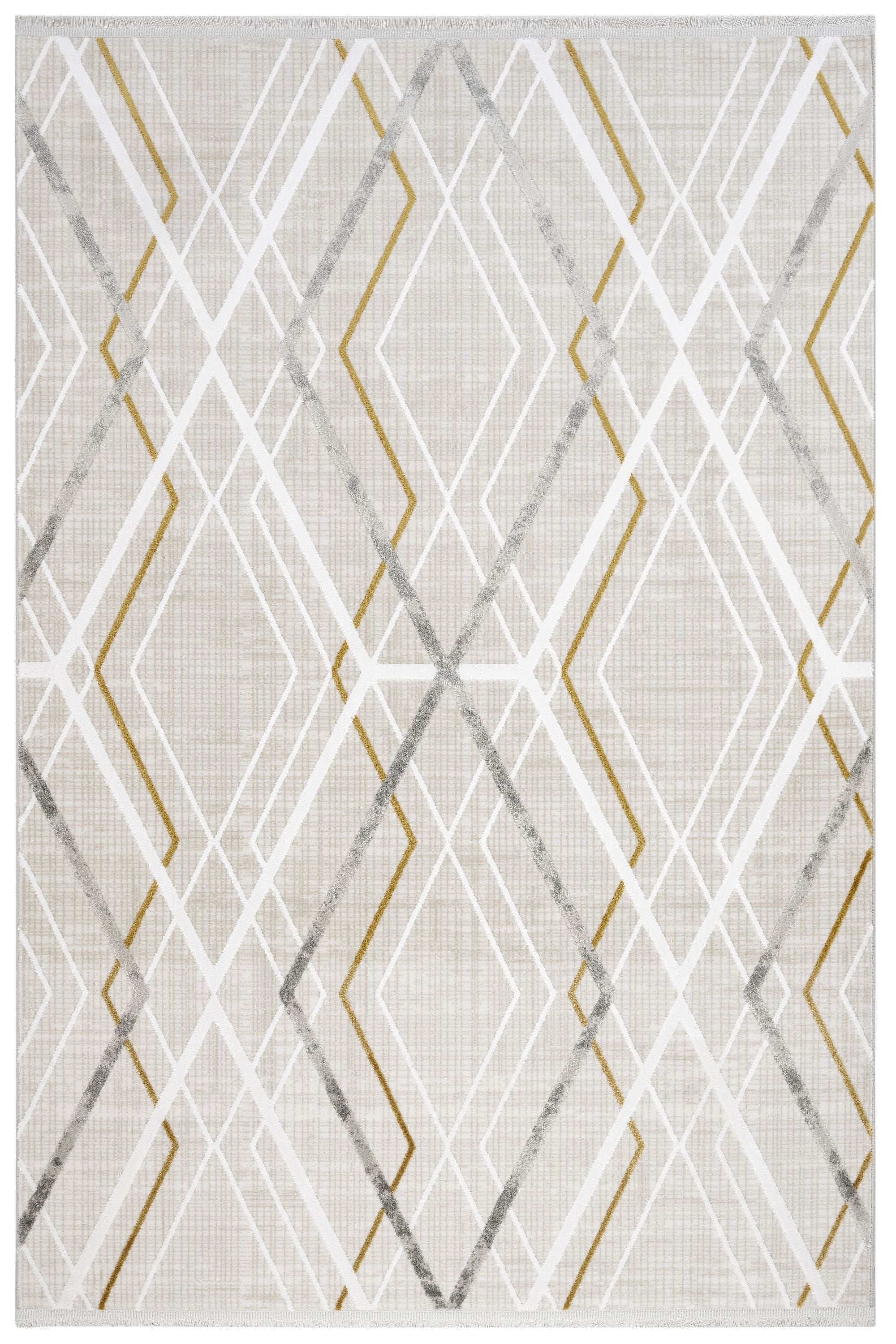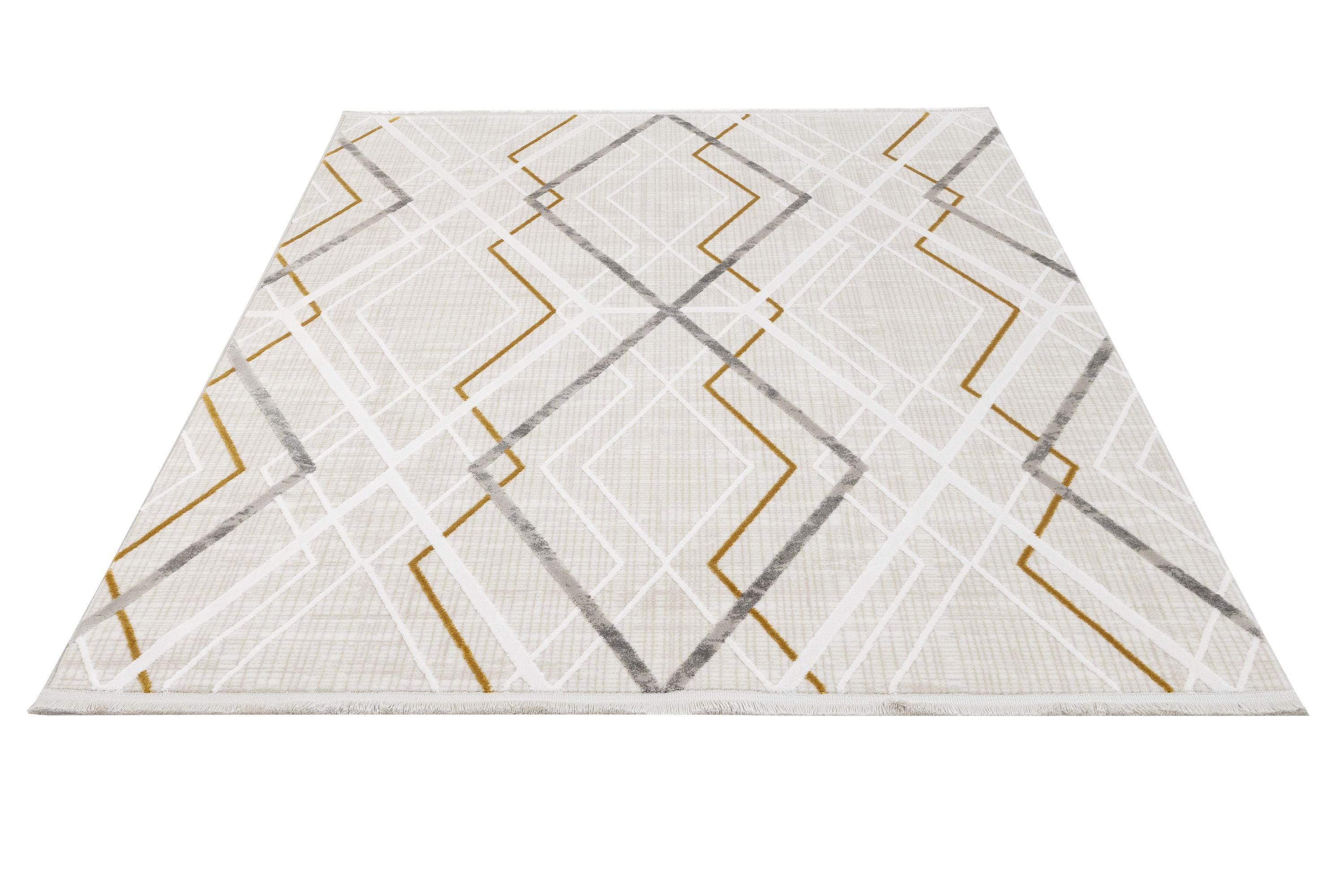 Gold Geometric Area Rug - Machine Made Rug with Fringed Edge for Stylish Home Decor